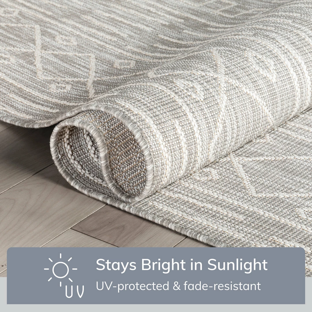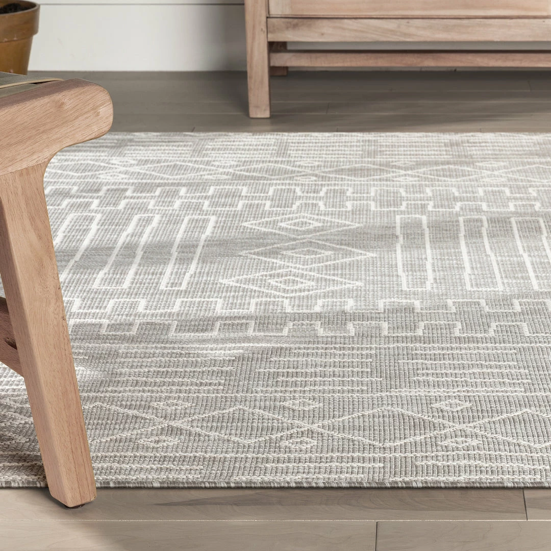 Well Woven Global Anza Tribal Geometric Pattern Grey Flat-Weave Indoor/Outdoor Rug