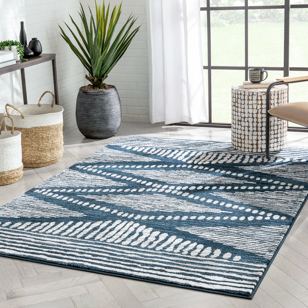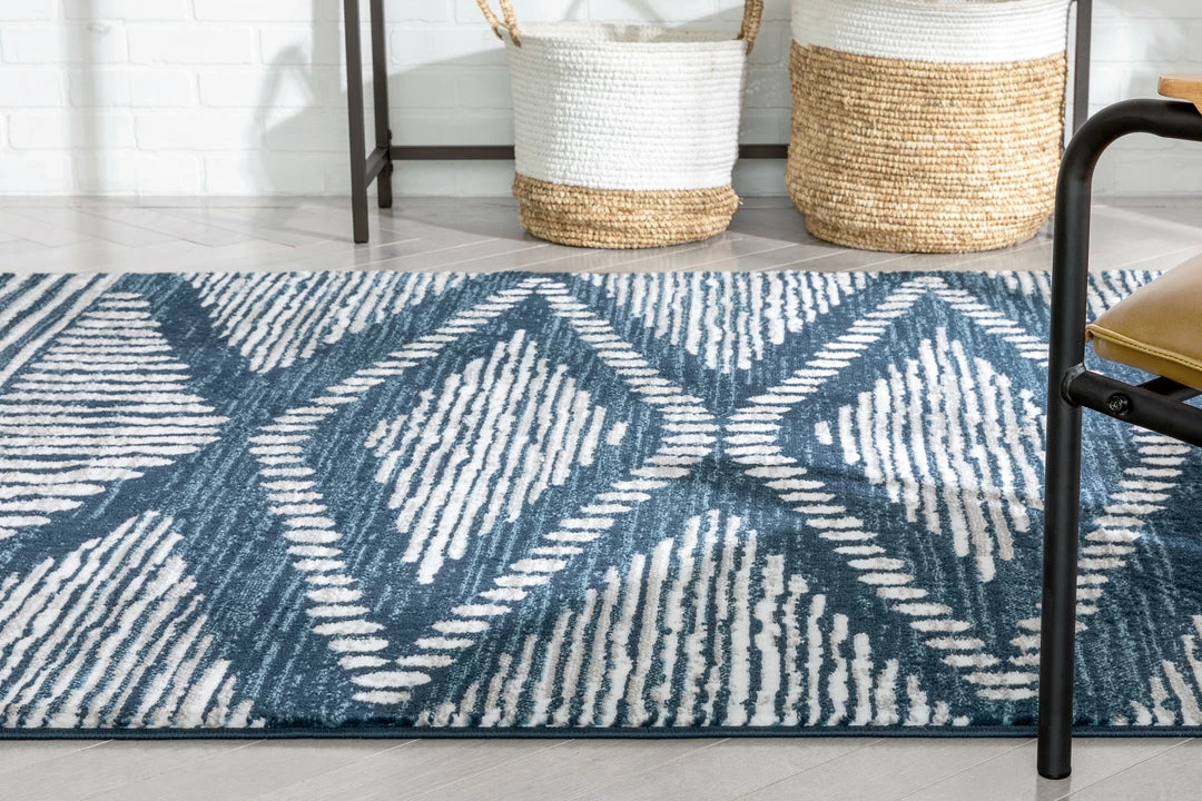 Well Woven Global Aosta Tribal Diamond Pattern Blue Rug