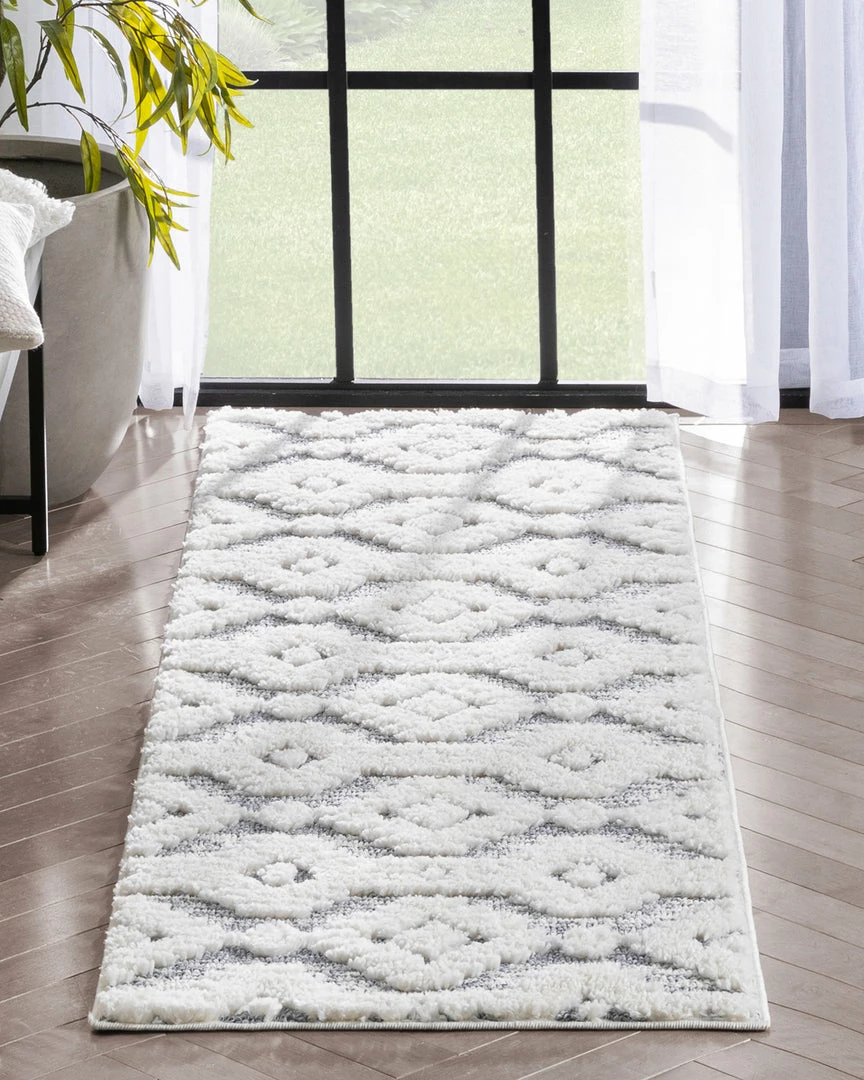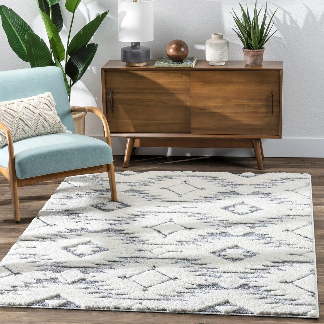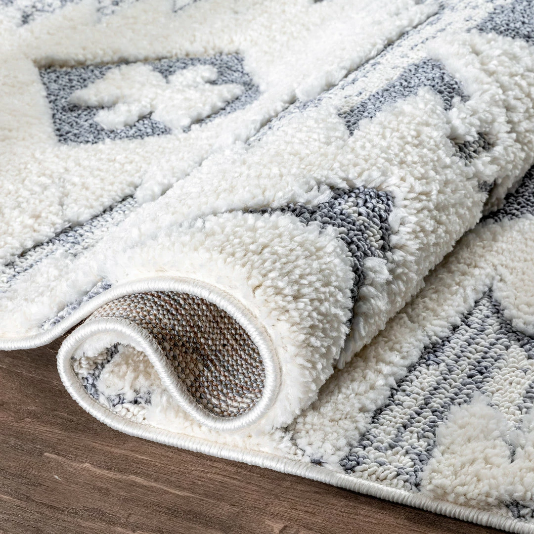 Well Woven Global Ares Moroccan Diamond Trellis Grey High-Low Shag Rug