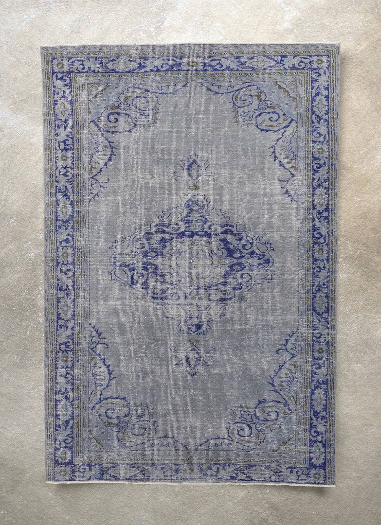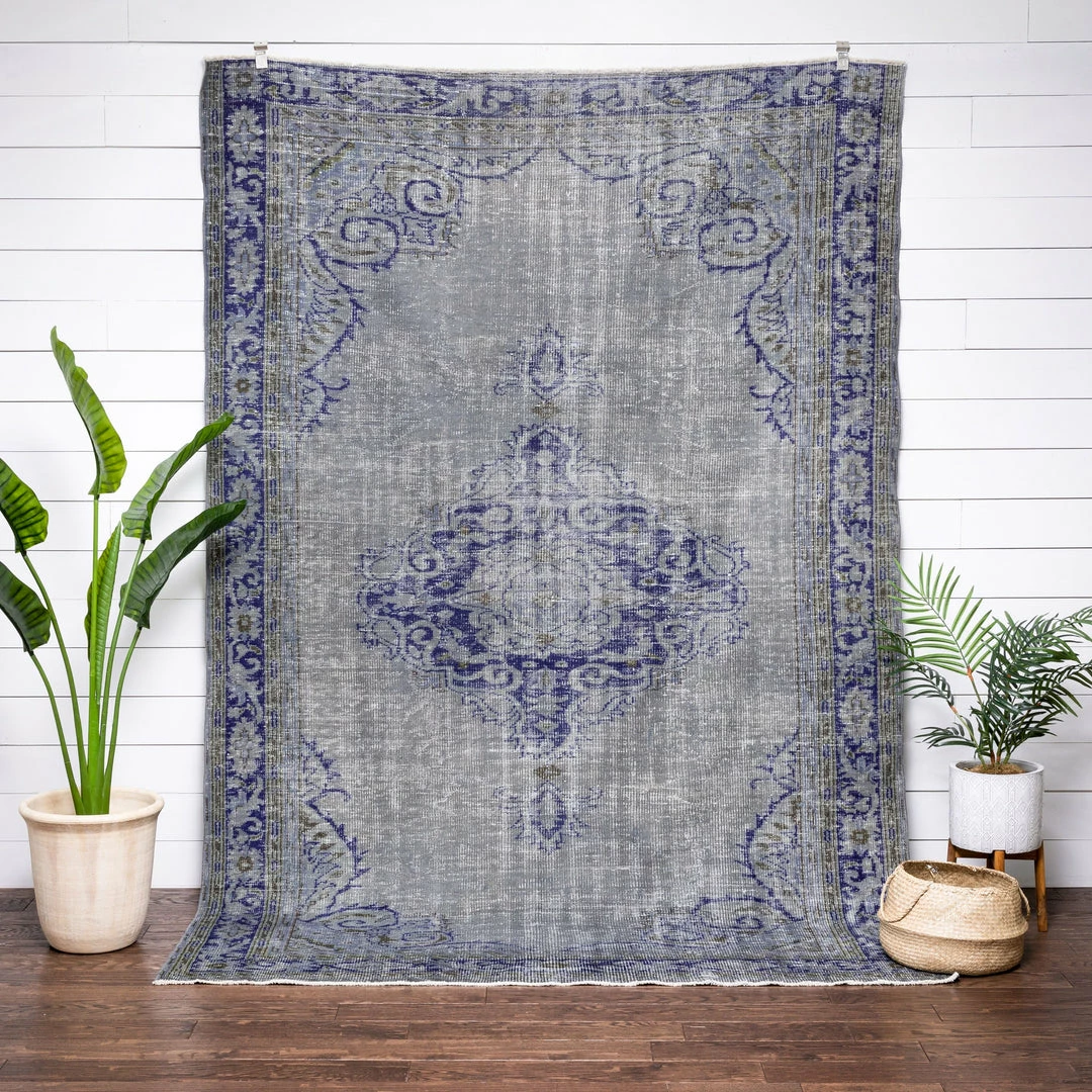 Arion dazzles with vintage style and a distressing that’s more than just a look. Their unique overdyed medallion pattern is woven in a rich array of grey and blue colors. It’s the combination of affordability and ease-of-use you expect from a machine-made rug with the history, character and style you can only get from an heirloom vintage one.