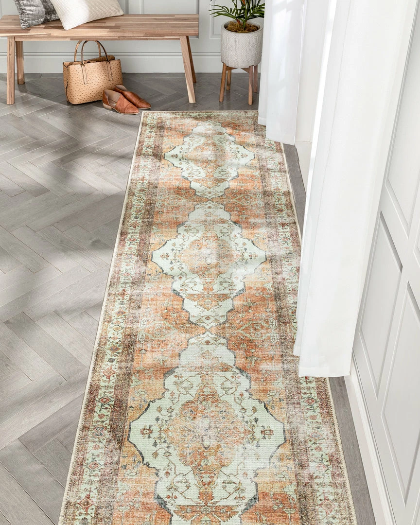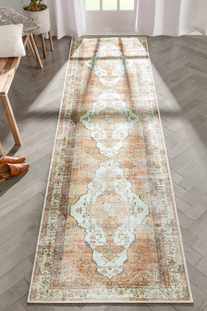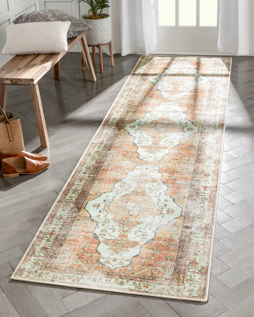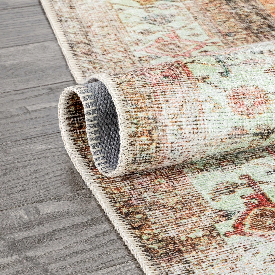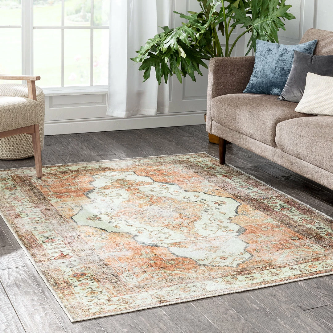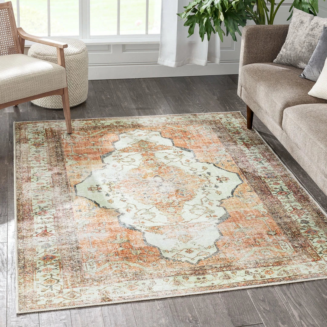 The machine washable Nile collection combines contemporary colors, an elegant medallion pattern, a wood-floor-safe backing, and durable construction for a modern and convenient rug. The kid and pet safe materials are stain resistant and easy to spot clean, making these rugs ideal for a busy family.