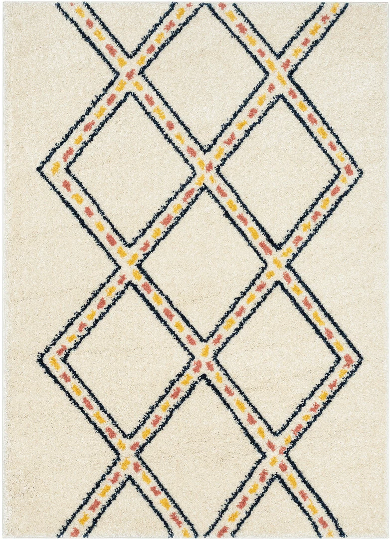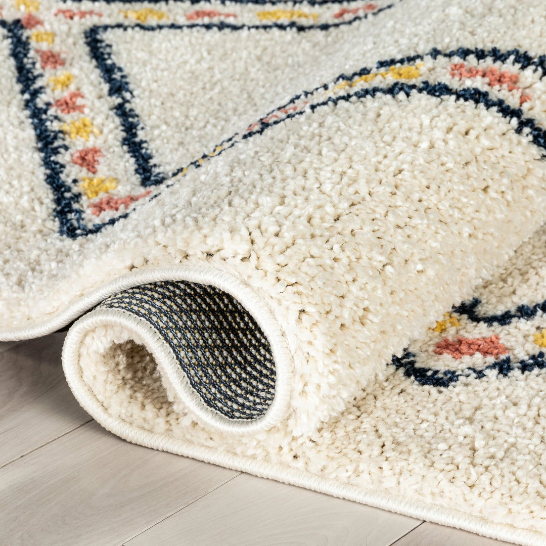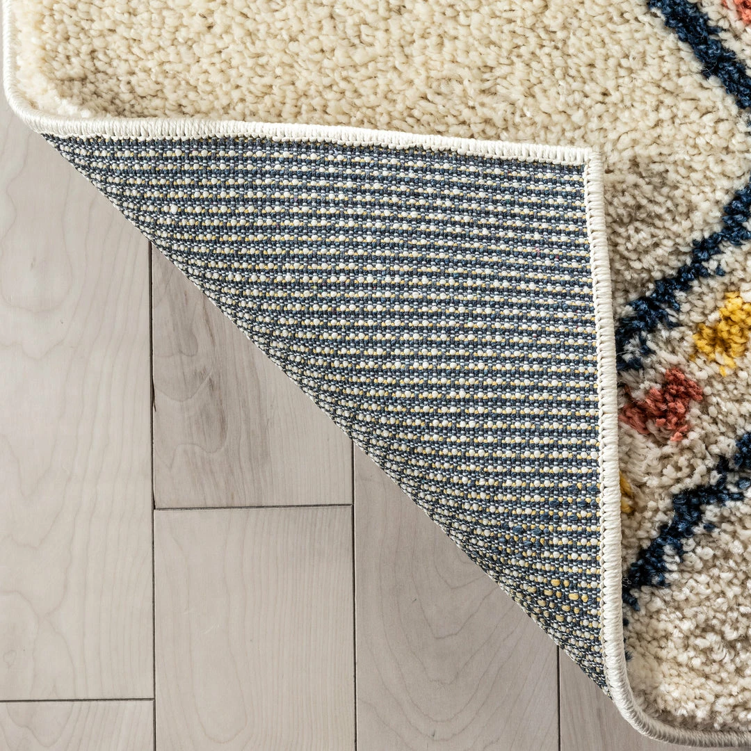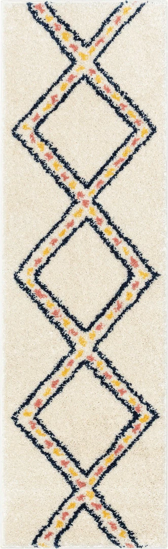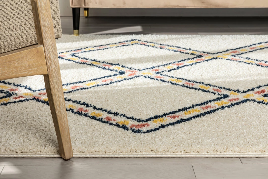 Well Woven Global Bodhi Moroccan Tribal Diamond Ivory Rainbow Shag Rug