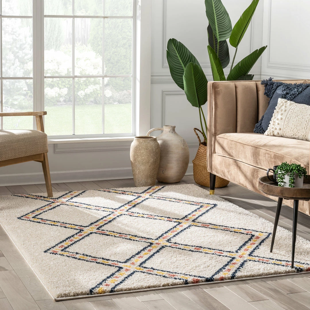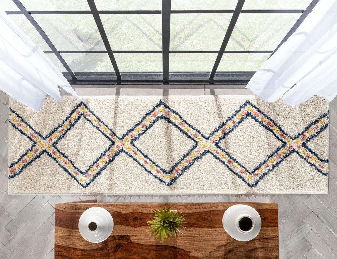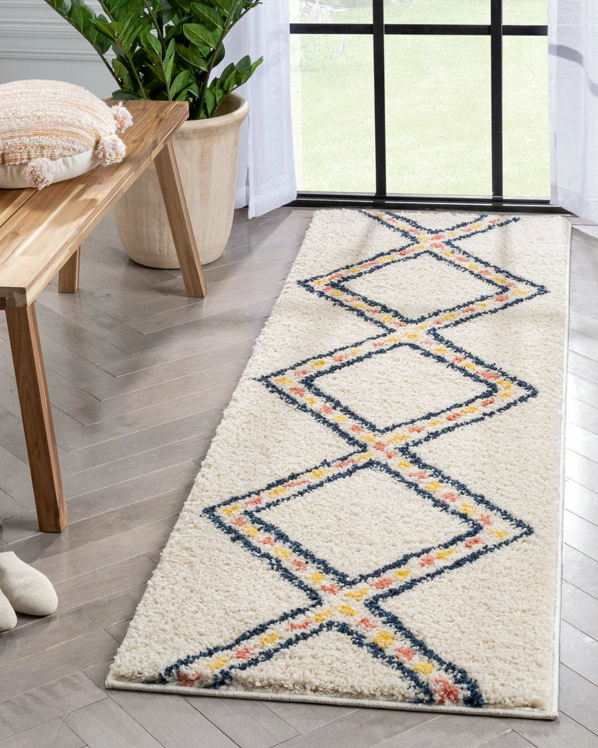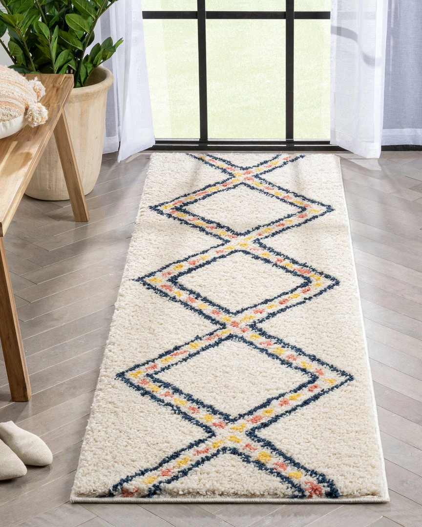 Well Woven Global Bodhi Moroccan Tribal Diamond Ivory Rainbow Shag Rug