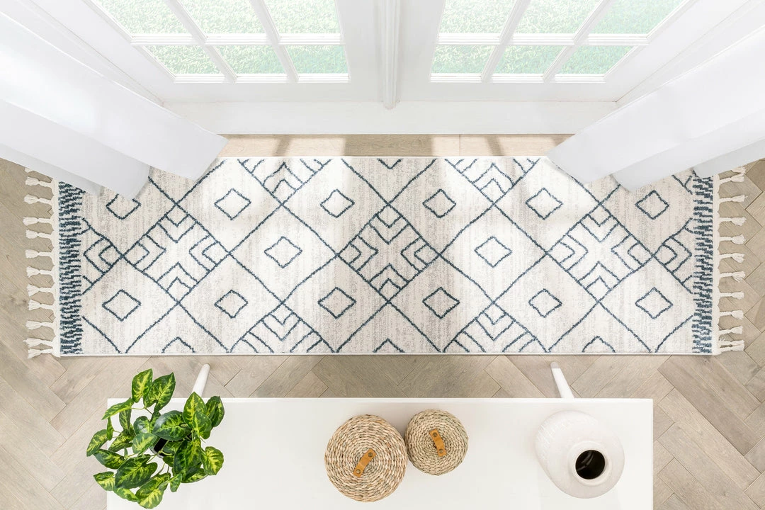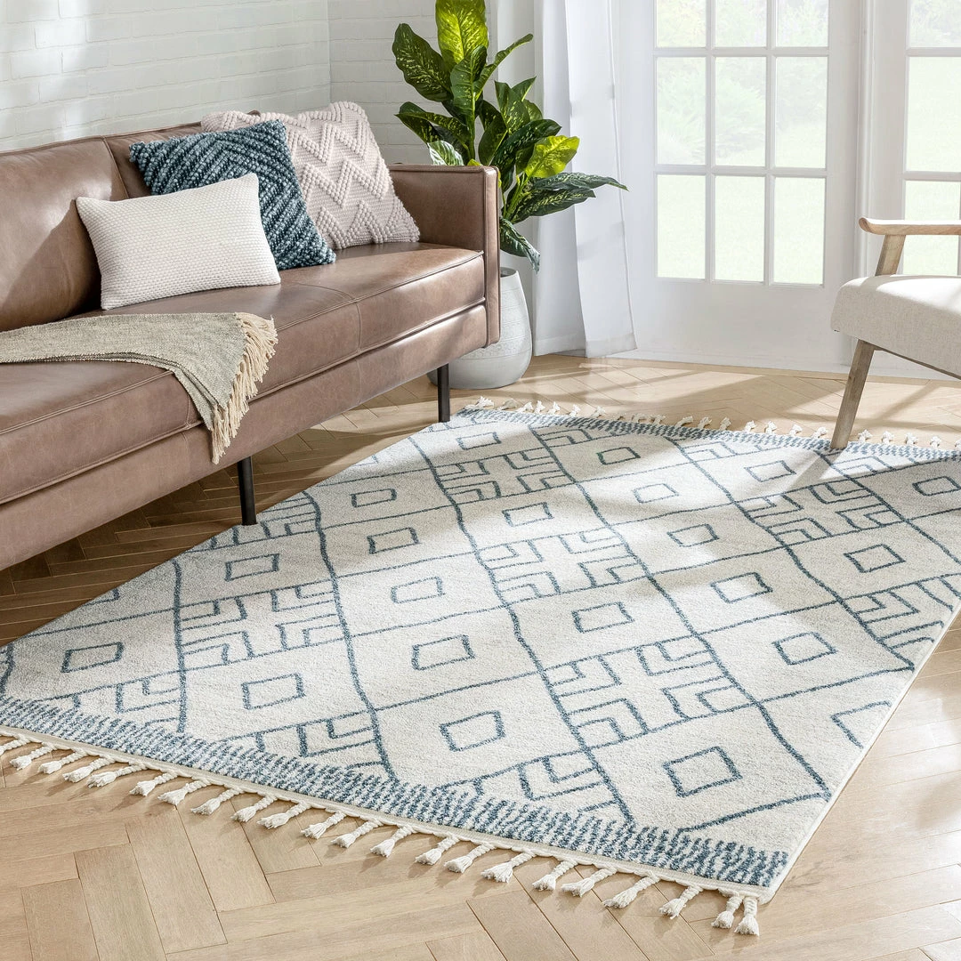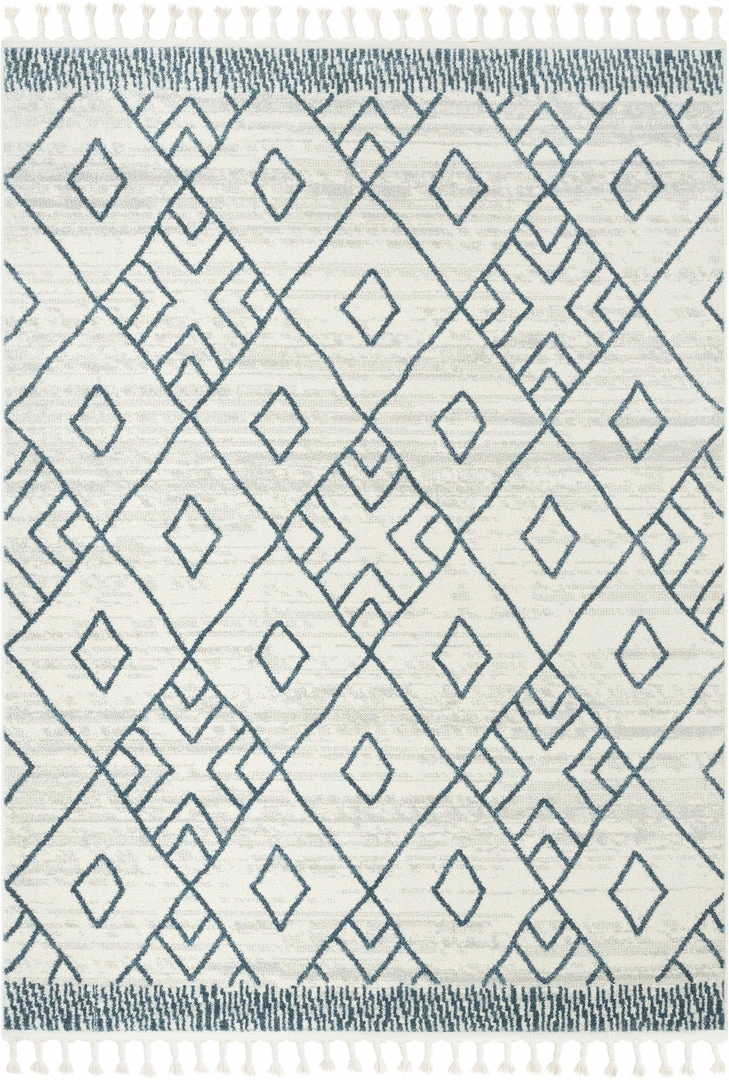 Well Woven Global Diodelly Moroccan Lattice Trellis Blue Ivory Rug