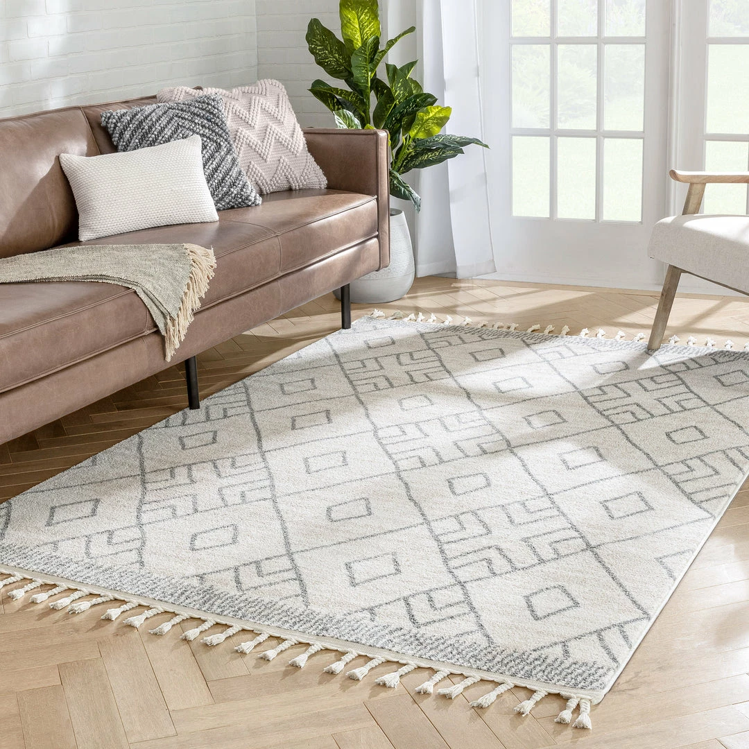 Well Woven Global Diodelly Moroccan Lattice Trellis Ivory Grey Rug