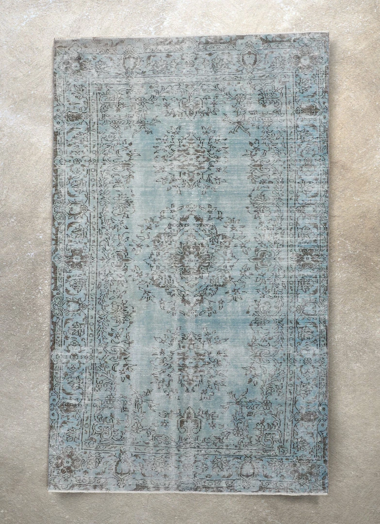 Ekrem dazzles with vintage style and a distressing that’s more than just a look. Their unique overdyed floral pattern is woven in a rich array of light blue and grey colors. It’s the combination of affordability and ease-of-use you expect from a machine-made rug with the history, character and style you can only get from an heirloom vintage one.