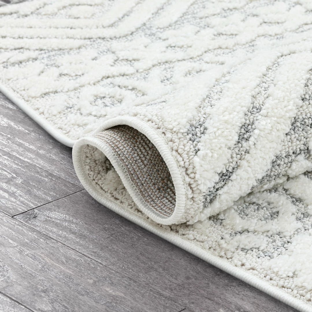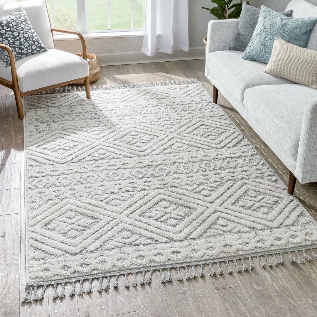 The Salem Collection’s globally inspired, distressed tribal patterns make the perfect centerpiece to a calming space. Ground yourself on a dense, looped pile that features soft, high-low pattern accents lending plushness and a rustic, chunky texture. Breathe easy knowing the yarn is stain resistant and easy to clean while the jute backing is wood floor safe.