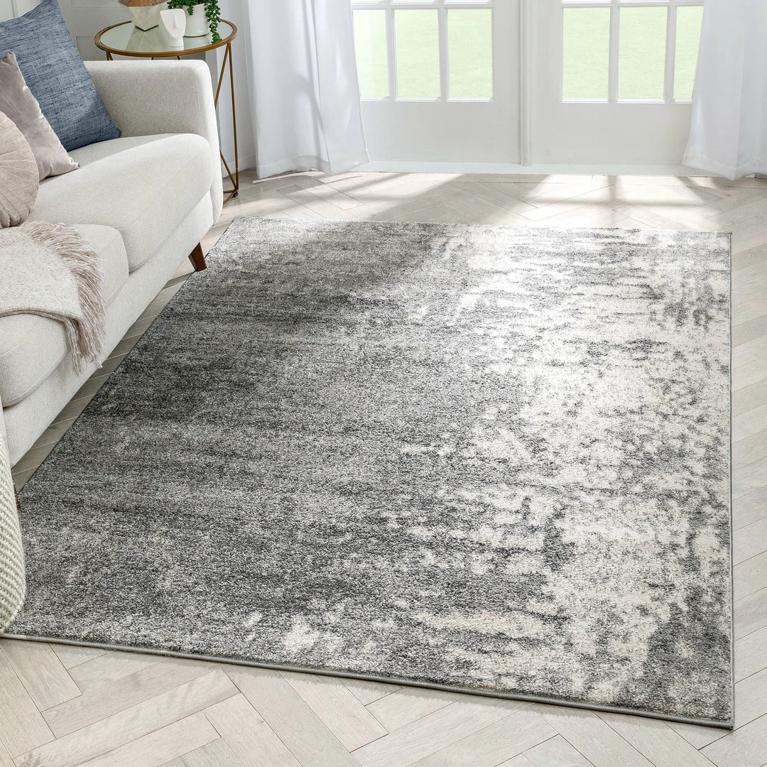 Well Woven Global Finca Industrial Solid & Striped Distressed Grey Rug