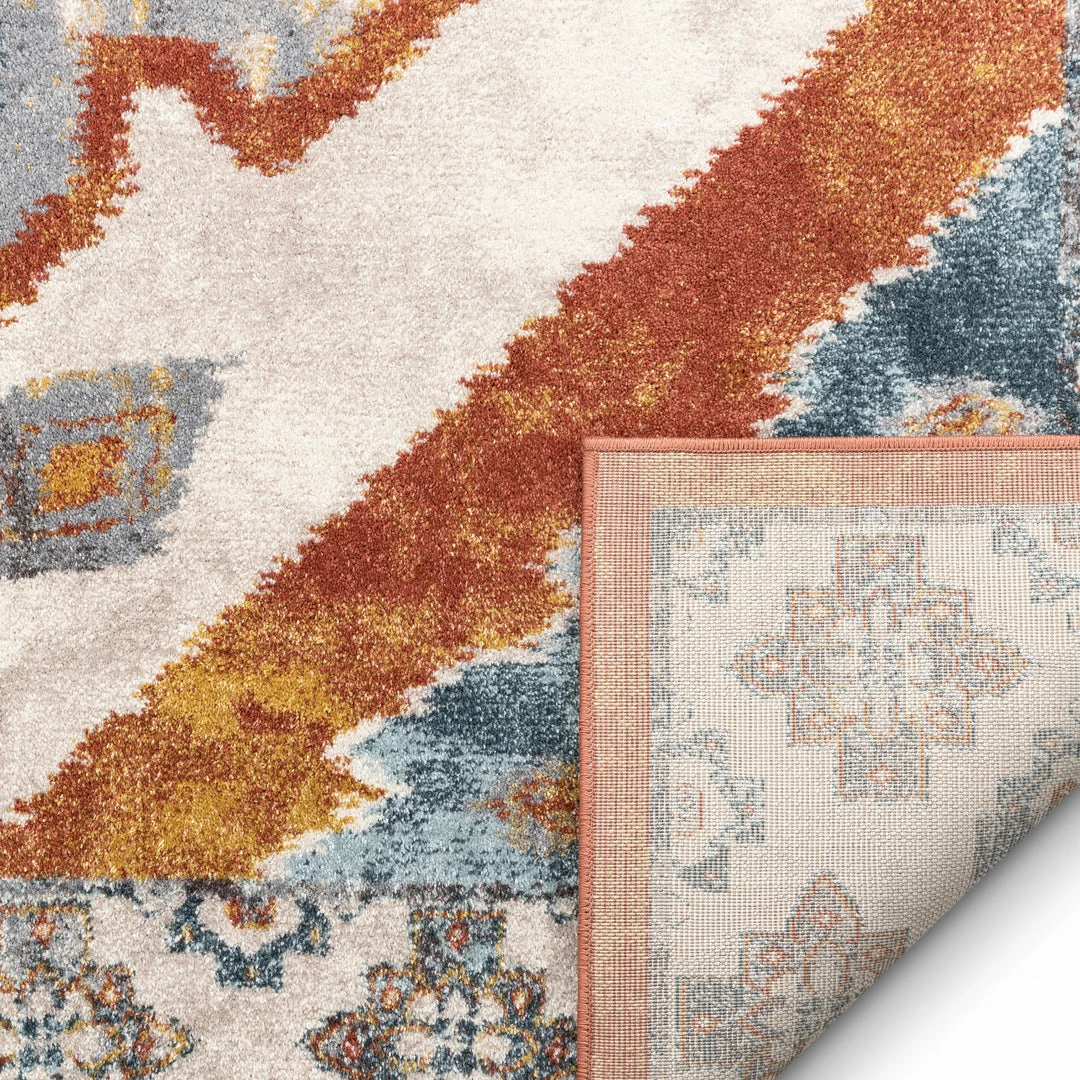 Sydney Vintage is a bright and trendy collection with both modern geometric and updated traditional patterns. Soft, warm, neutral tones are accented with bright, cool, blues and warm reds and yellows. Faded designs add that extra something and a plush 0.5 pile of air twist frieze polypropylene gives an exceptionally textured look. This yarn is soft, stain resistant, and does not shed or fade.