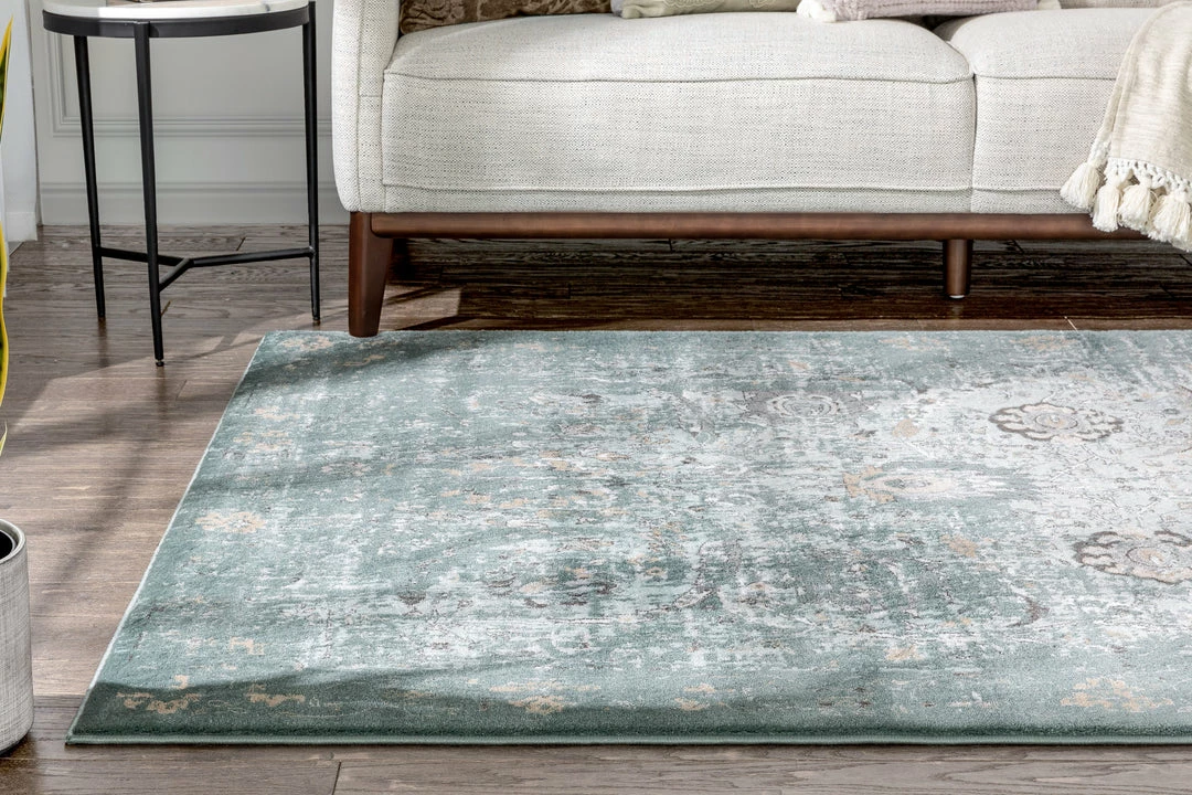 The Kensington Collection is a modern take on the heritage styles of generations past. Classic medallion patterns are woven in a striking yet subdued palette of warm coral and copper with minty blues and greens that bring to mind a cool breeze through fresh green grass. These colors are anchored by soft, neutral beiges and given a distressed wear effect for a cozy, lived-in feel. The dense, 0.4″ pile of fine, heat set polypropylene is soft, stain resistant, and won’t shed or fade over time. The rug’s 100% jute backing is safe for wood floors and all four sides of the rug are serged for improved durability.
