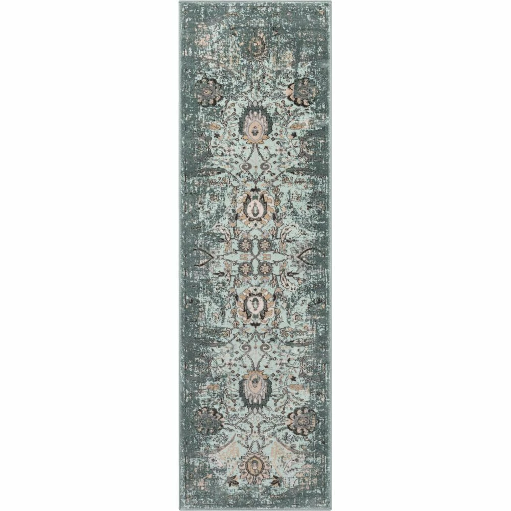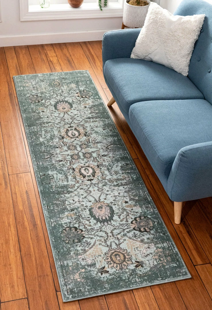 - The colors in this rugs are Turkish Blue,Sea foam Blue with tones of Green