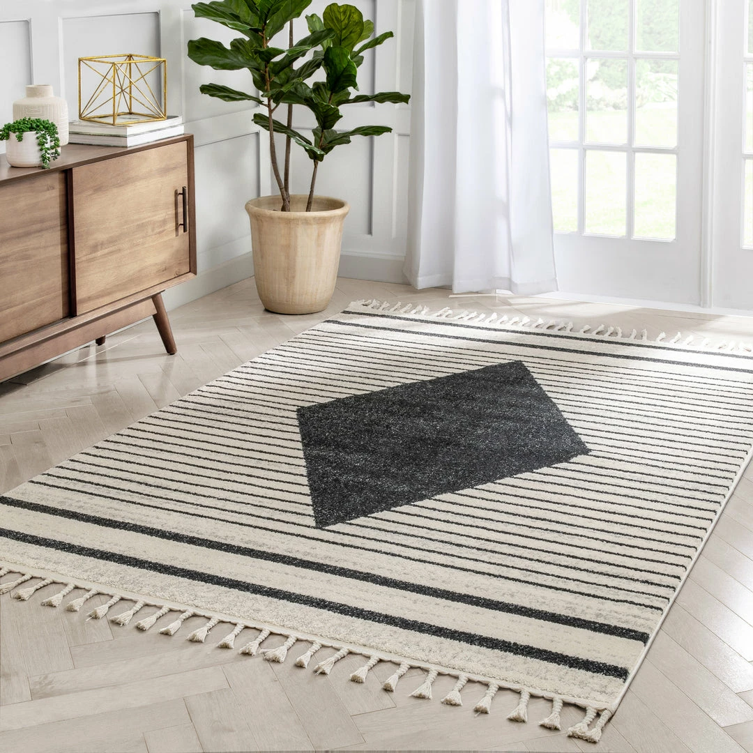 Well Woven Global Josie Nordic Medallion Stripes Grey Rug