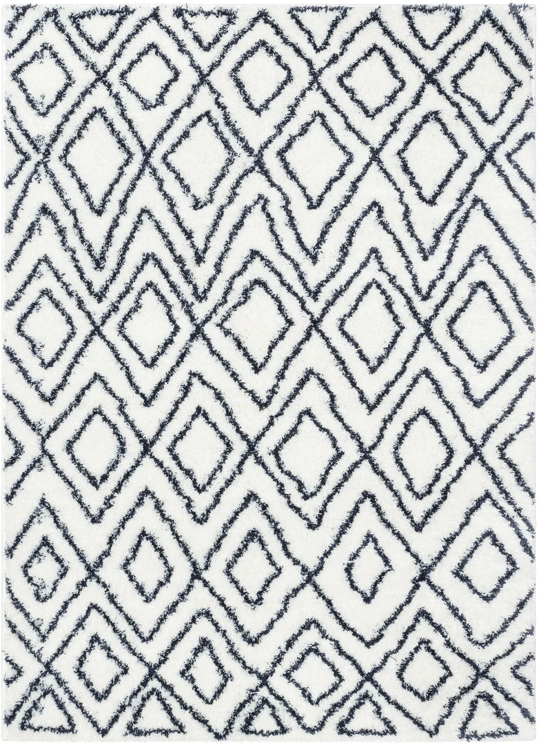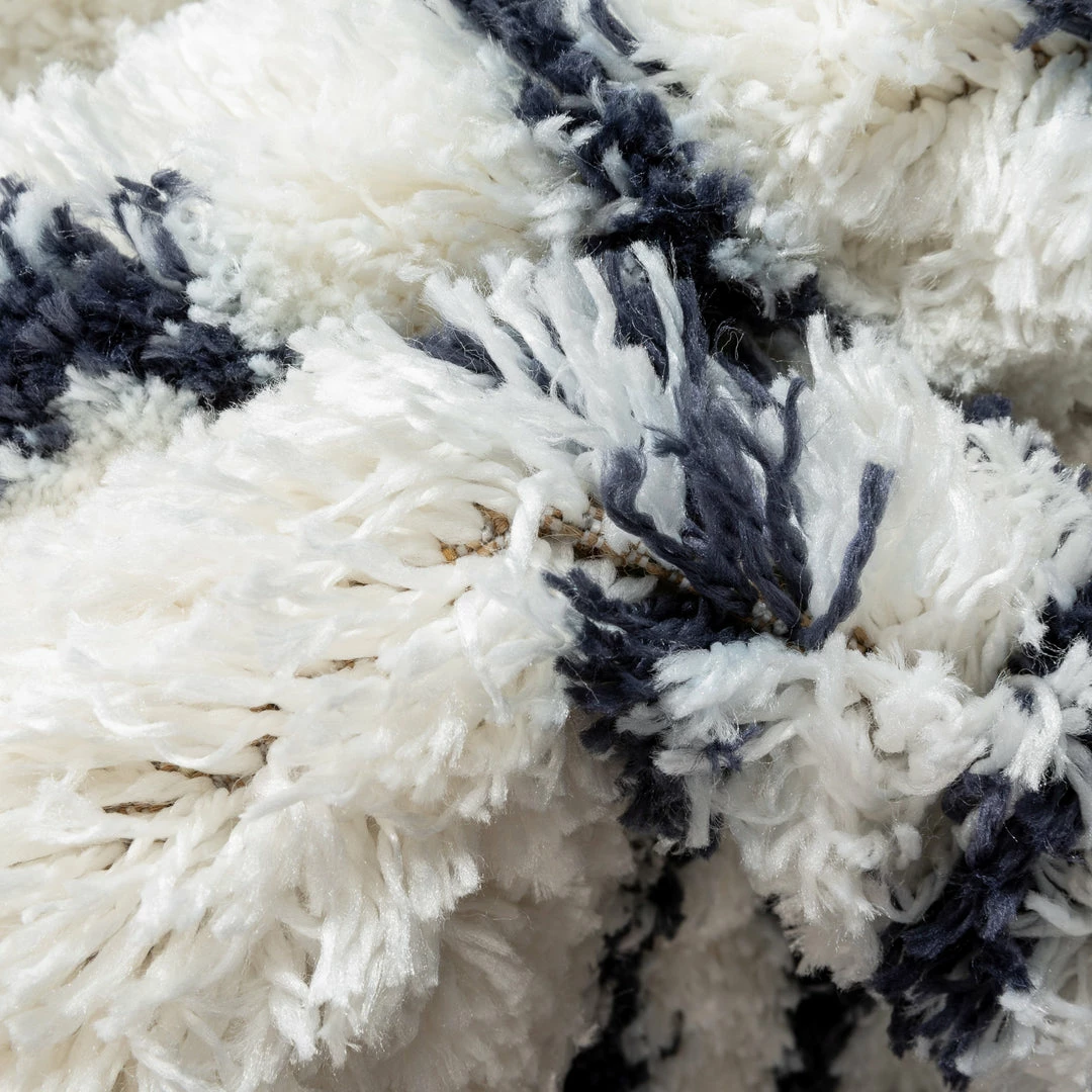 Well Woven Global Lagos Tribal Diamond Pattern Blue Thick & Soft Shag Rug