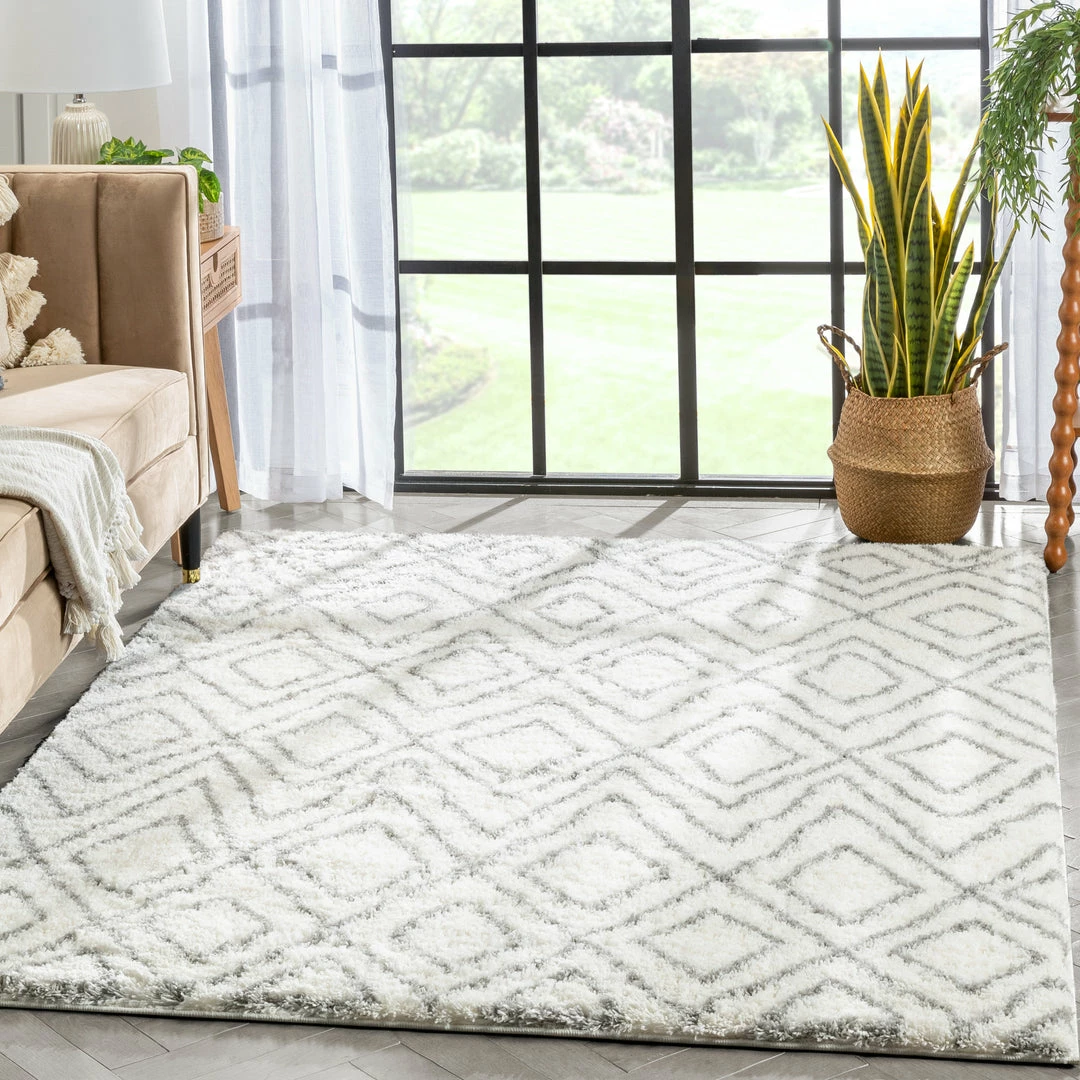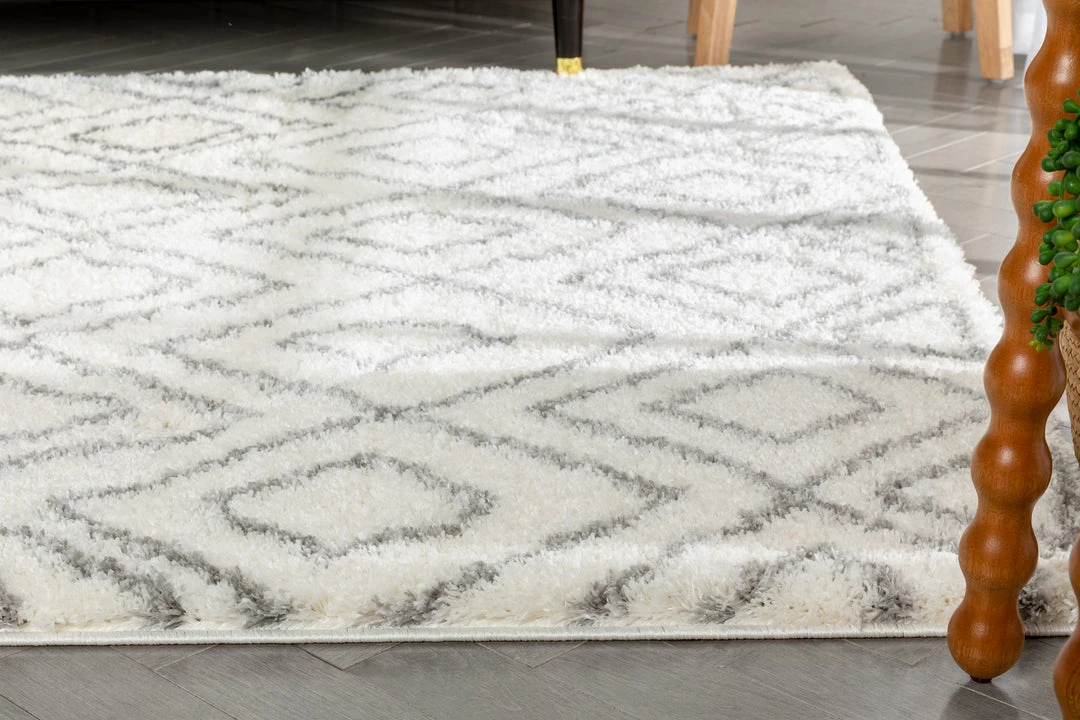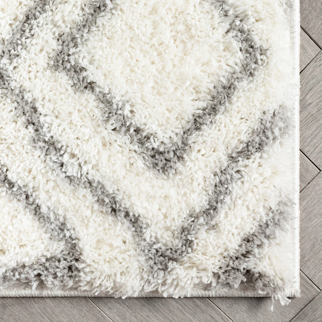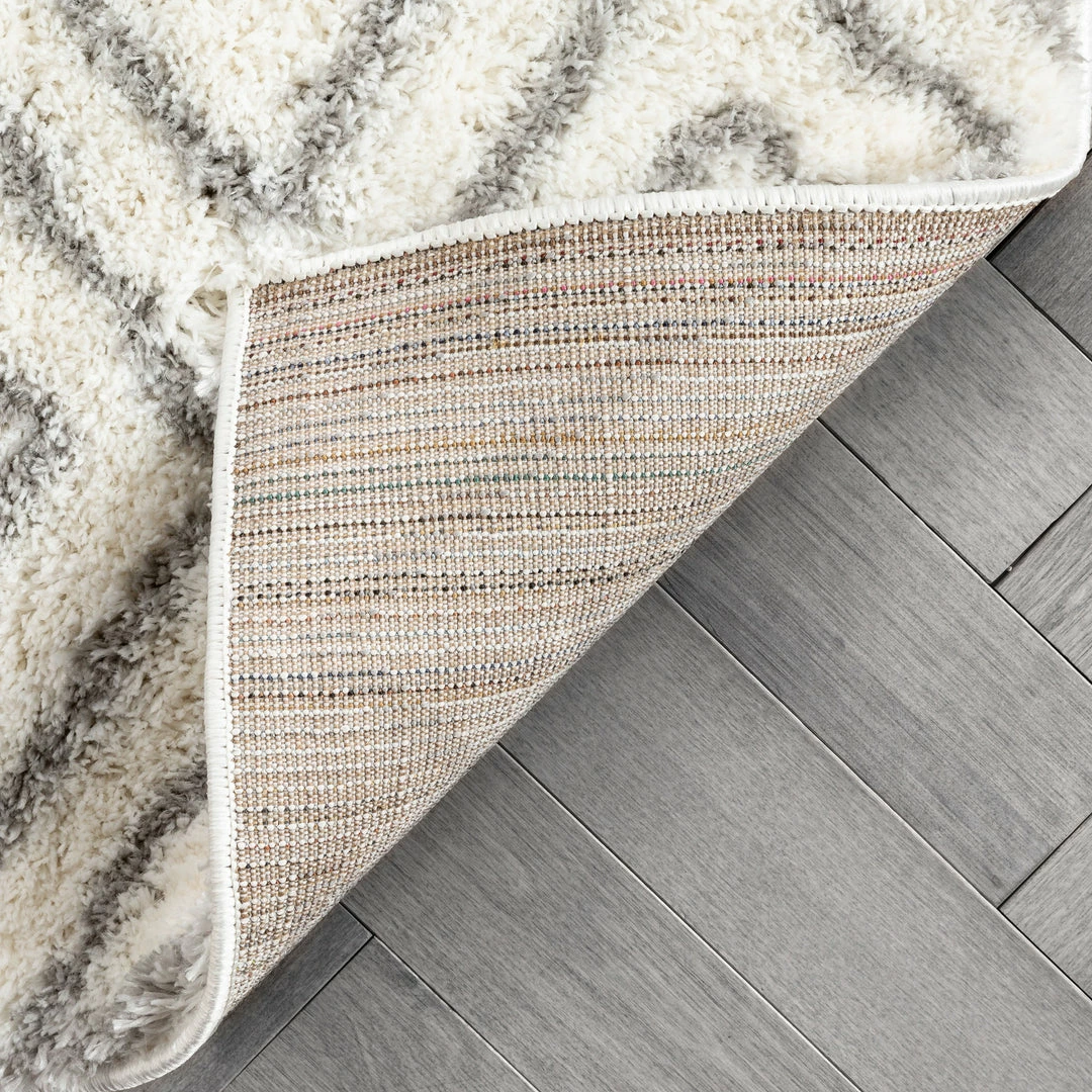Well Woven Global Lagos Tribal Diamond Pattern Ivory Thick & Soft Shag Rug