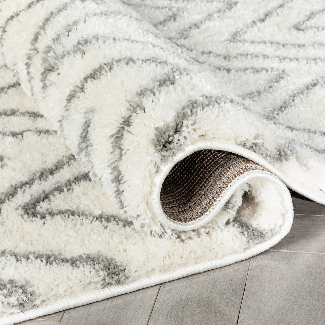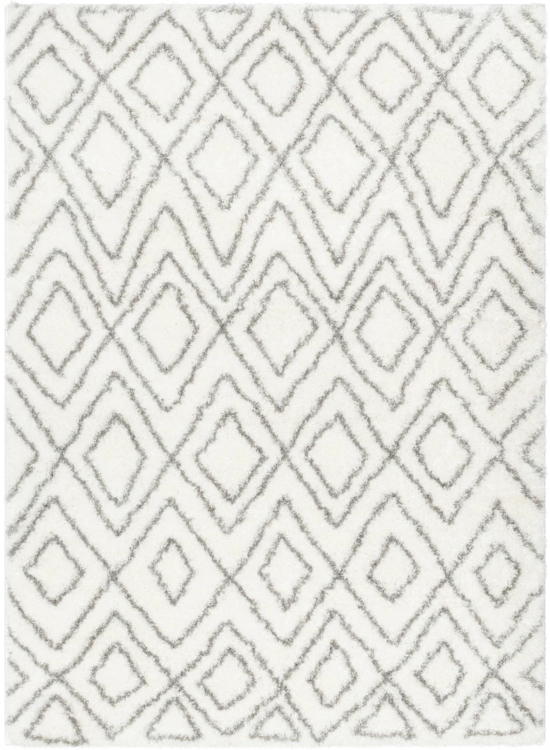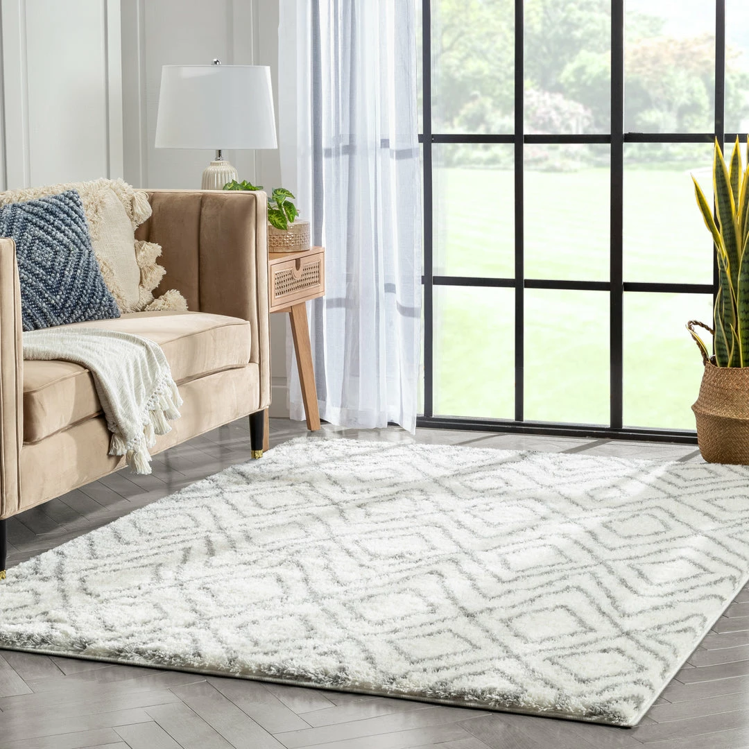 Well Woven Global Lagos Tribal Diamond Pattern Ivory Thick & Soft Shag Rug
