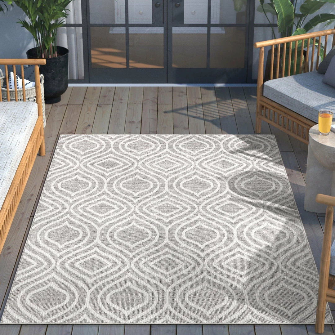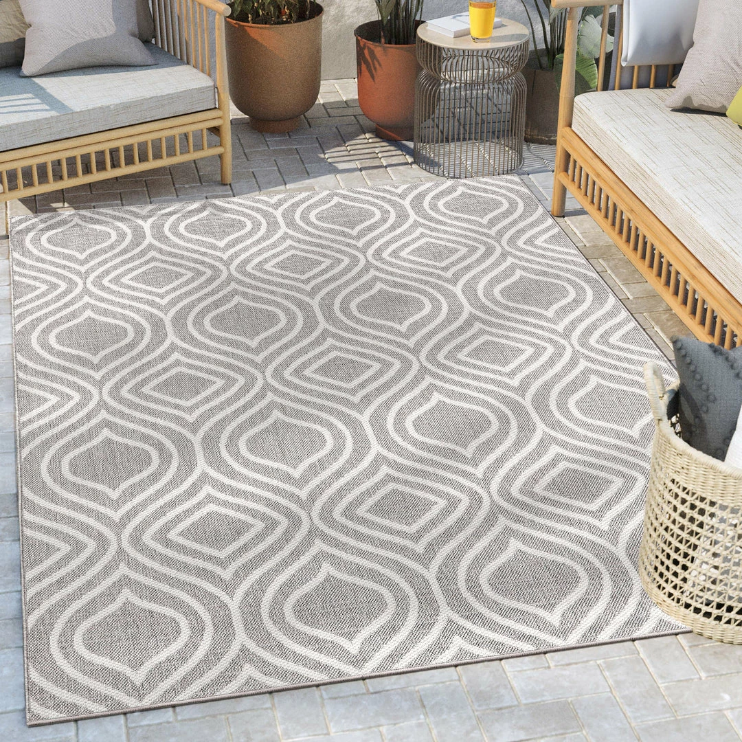 Well Woven Global Ludo Lattice Trellis Indoor/Outdoor Grey Textured Rug