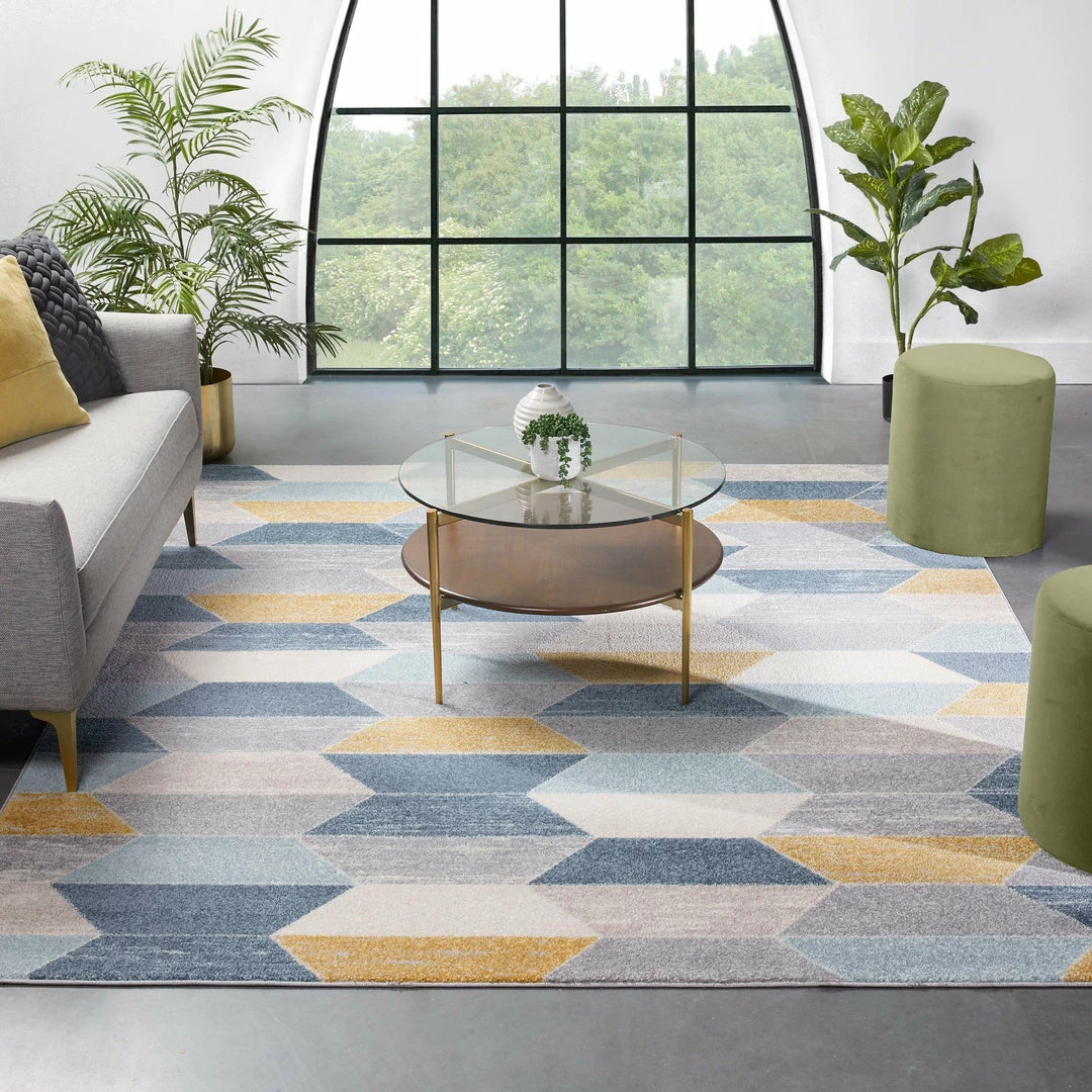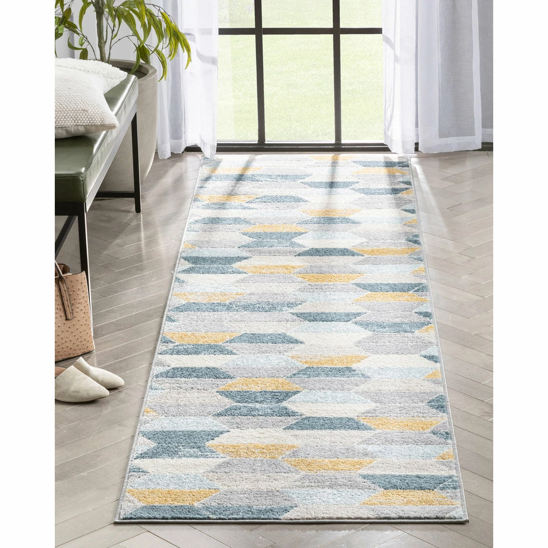 The Mystic Collection is an exciting array of trendy geometric patterns woven in a combination of classic neutral tones and bright, fun colors. From ultra modern swoops, lines and angles to the simple tile or Moroccan trellis, there is a pattern for every room. A 0.4″ pile of air twist frieze polypropylene gives a textured look and soft feel. The yarn is stain resistant and doesn’t shed or fade over time. Durable and easy to clean, these area rugs are made to last.