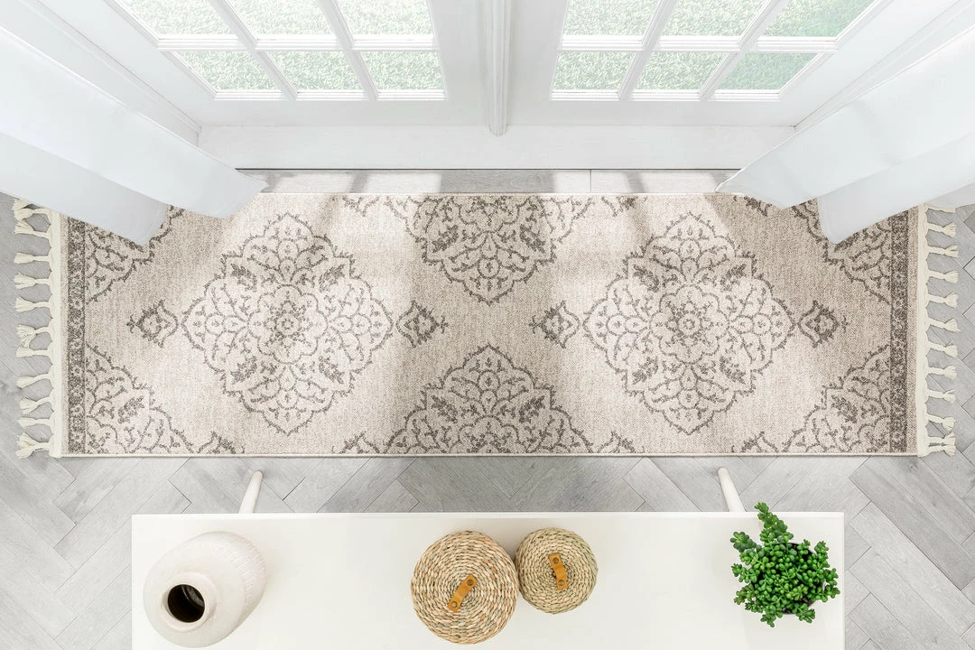 Well Woven Global Mara Medallion Botanical Pattern Brown Beige Kilim-Style Rug