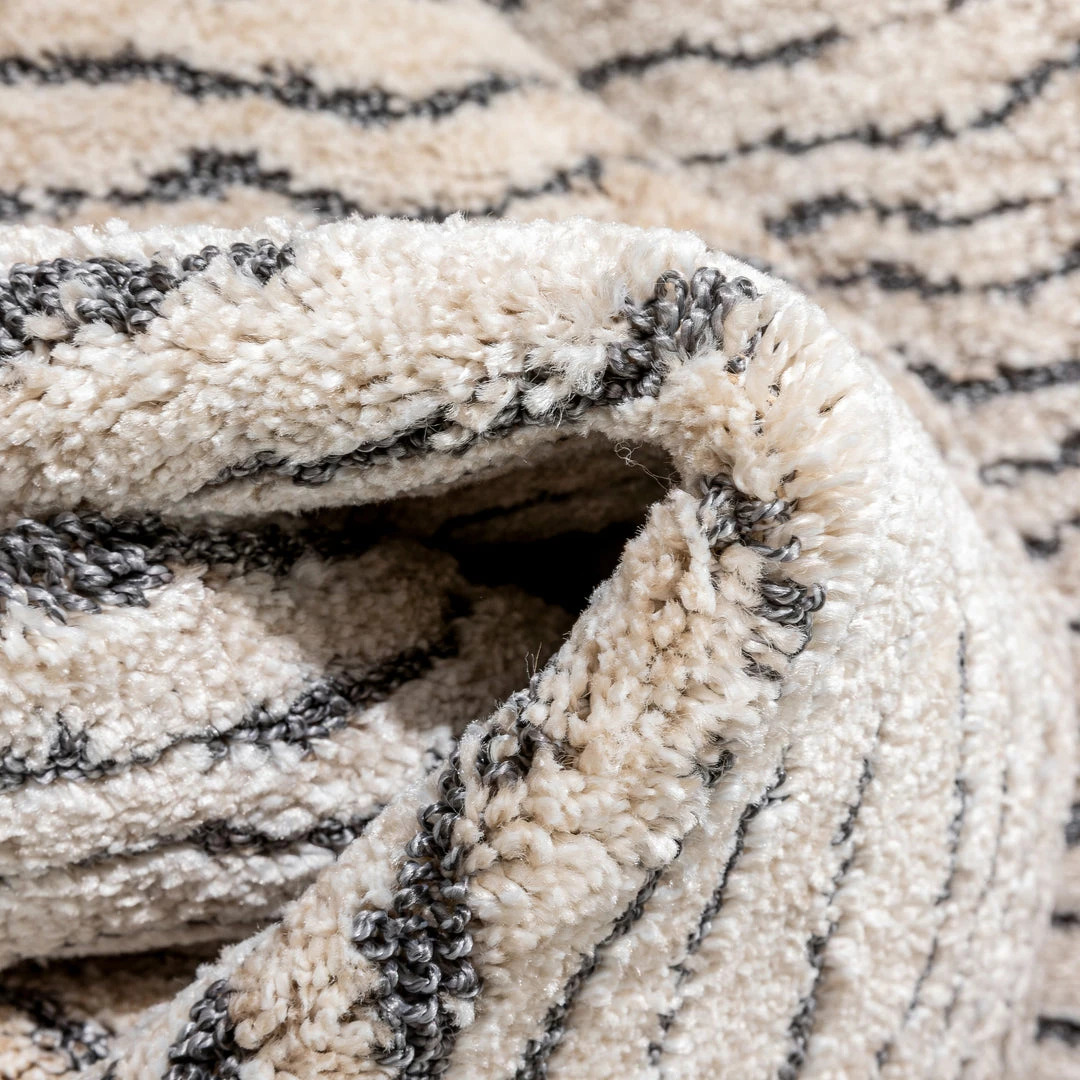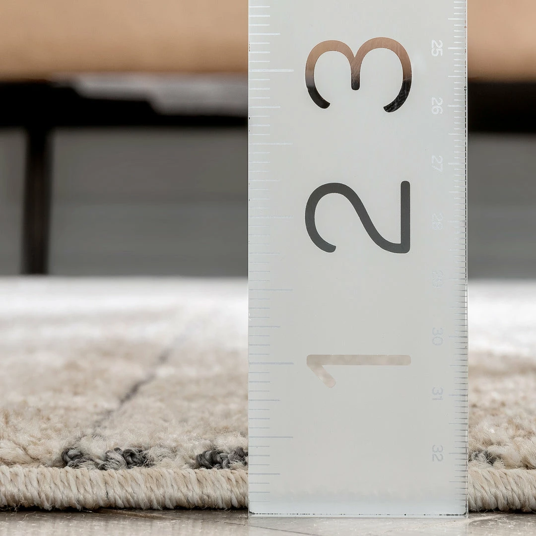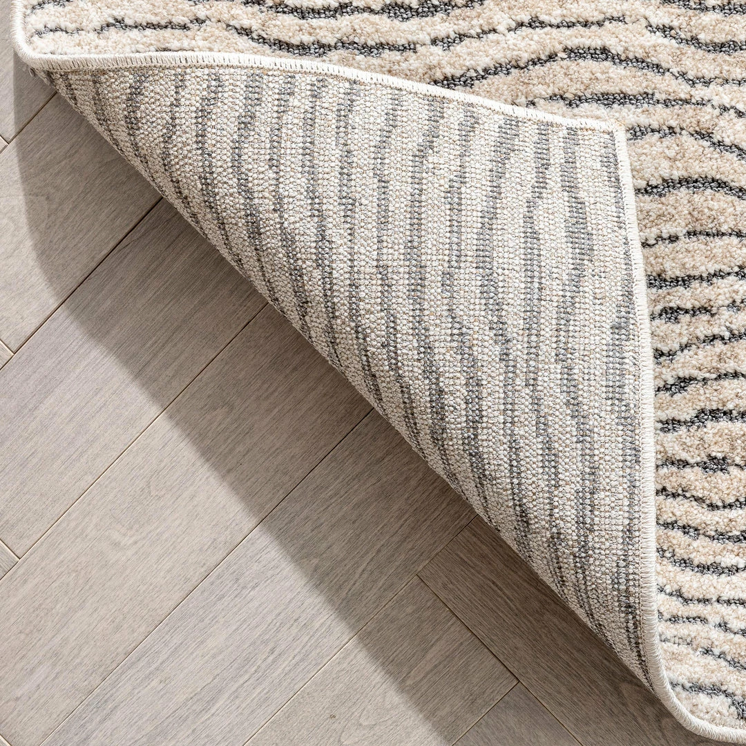 Well Woven Global Mateo Tribal Geometric Coastal Lines Beige Distressed High-Low Rug