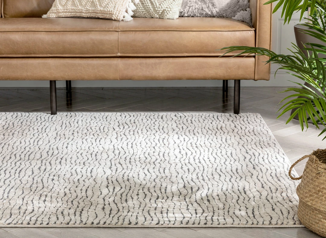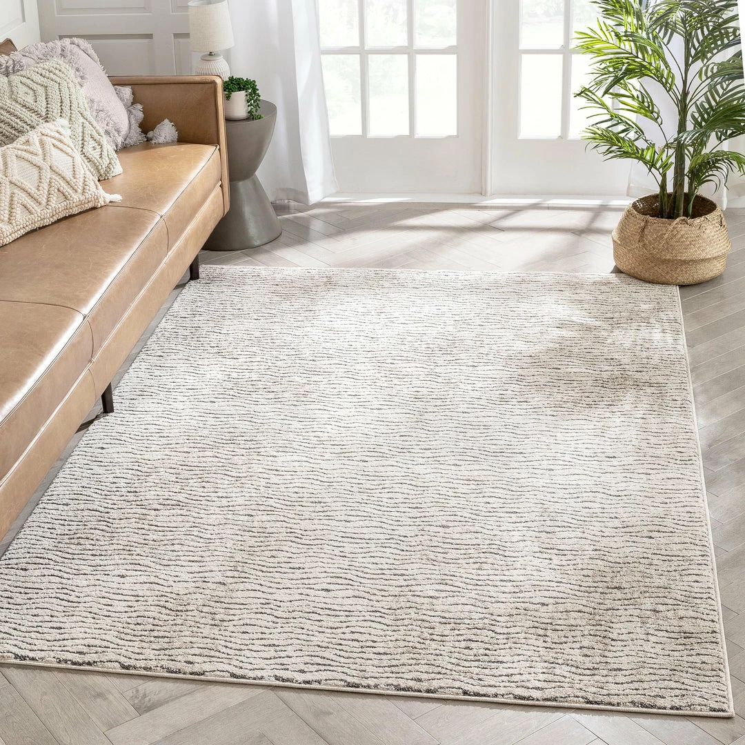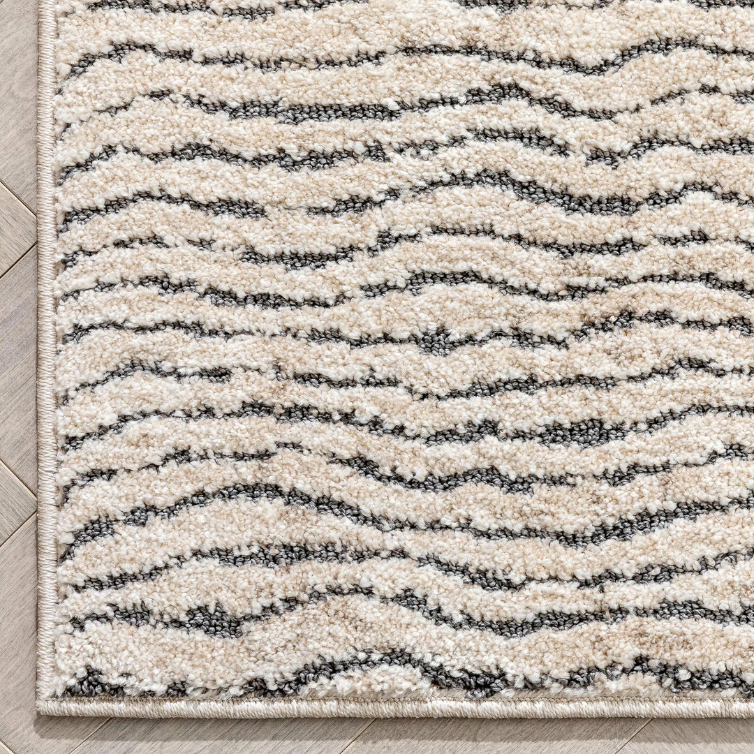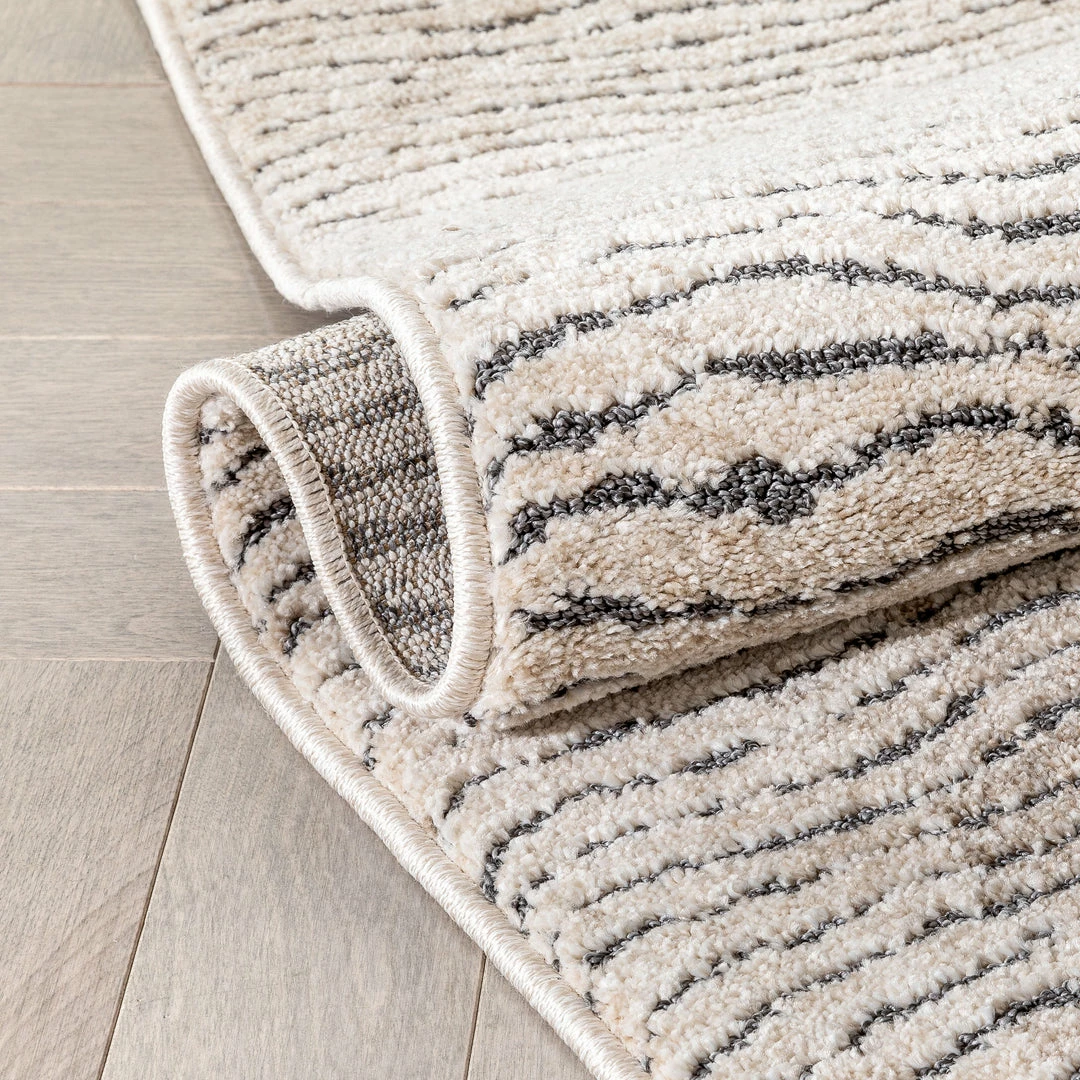 Well Woven Global Mateo Tribal Geometric Coastal Lines Beige Distressed High-Low Rug