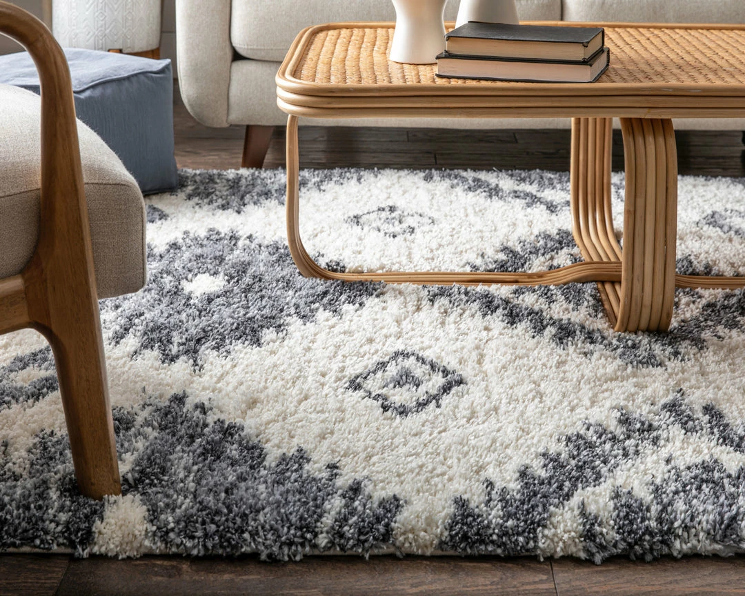 Chloe is a collection of cozy, Moroccan inspired shags with an irresistibly plush pile. The tribal designs are woven in strong neutral tones, accented with a bold blue, making these classic looks the perfect combination of classic sophistication and contemporary playfulness.