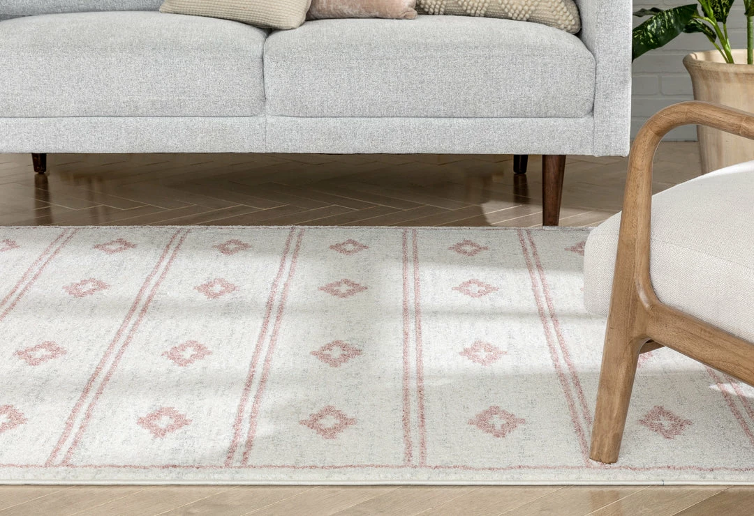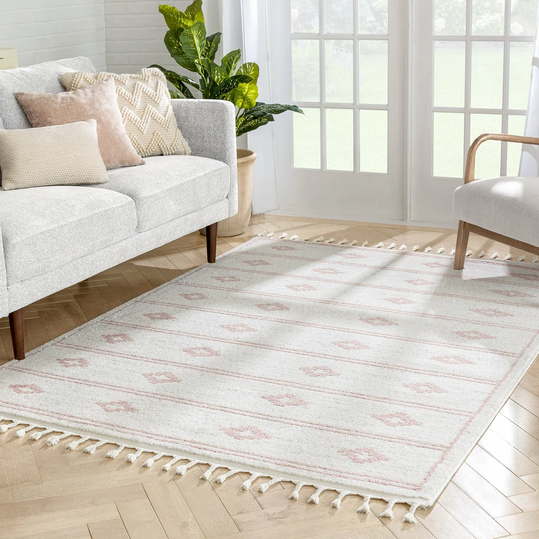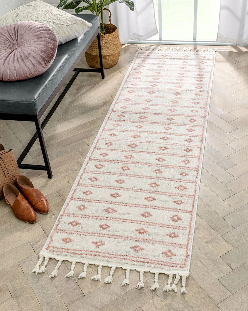 Well Woven Global Parallel Moroccan Tribal Diamond Pattern Blush Rug
