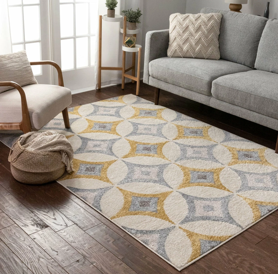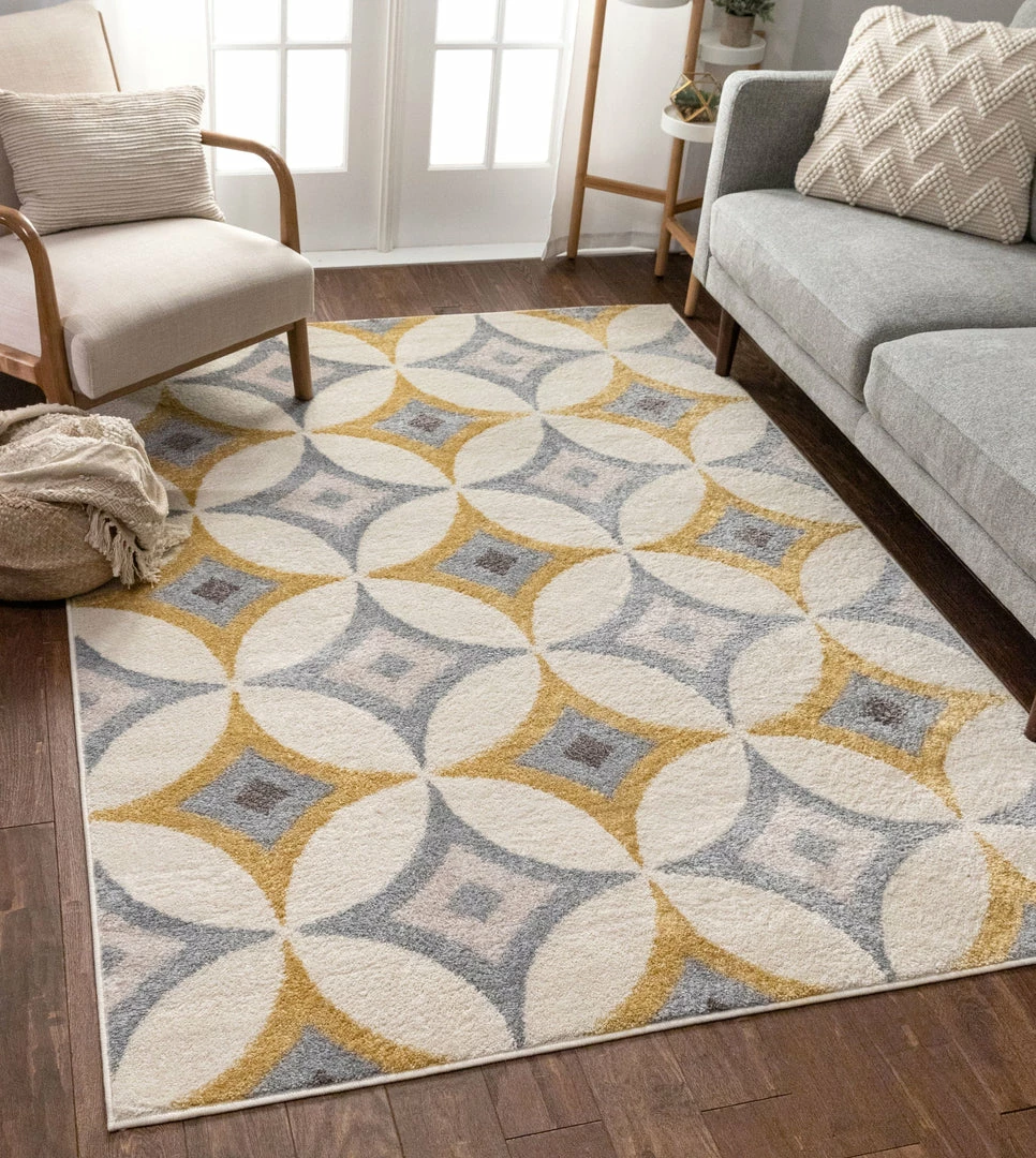 The Mystic Collection is an exciting array of trendy geometric patterns woven in a combination of classic neutral tones and bright, fun colors. From ultra modern swoops, lines and angles to the simple tile or Moroccan trellis, there is a pattern for every room. A 0.4″ pile of air twist frieze polypropylene gives a textured look and soft feel. The yarn is stain resistant and doesn’t shed or fade over time. Durable and easy to clean, these area rugs are made to last.
