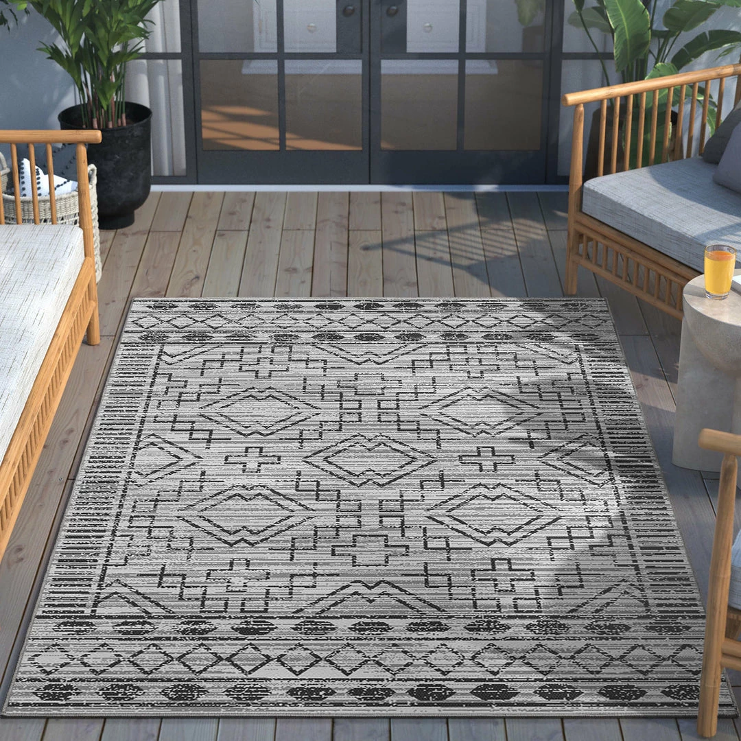 Well Woven Global Quay Tribal Indoor/Outdoor Grey Flat-Weave Rug