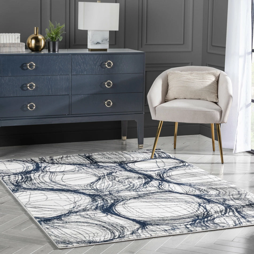 Well Woven Global Sinead Vintage Modern Abstract Blue Glam Rug