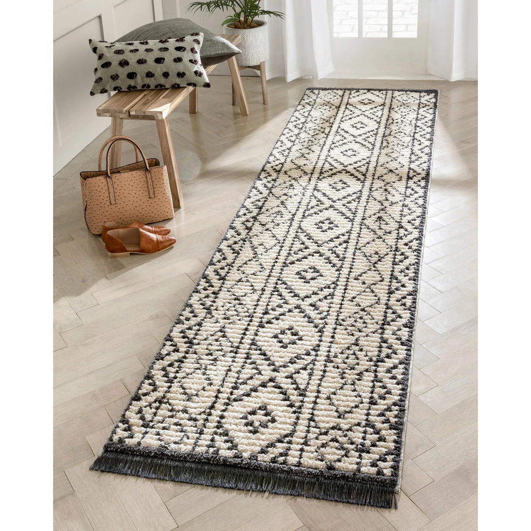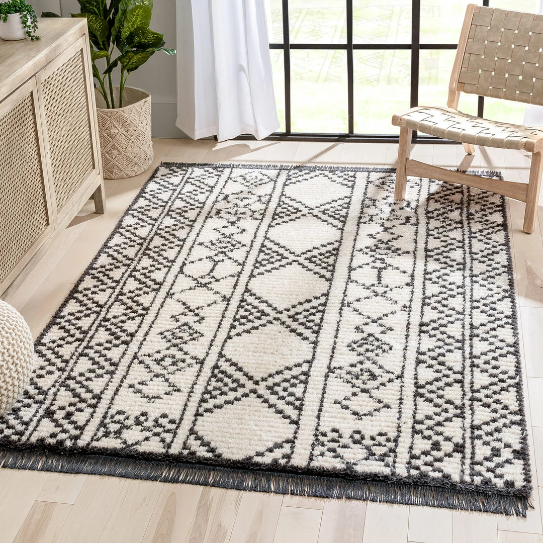 Well Woven Global Tallulah Tribal Diamond Lattice Pattern Grey High-Low Textured Pile Rug