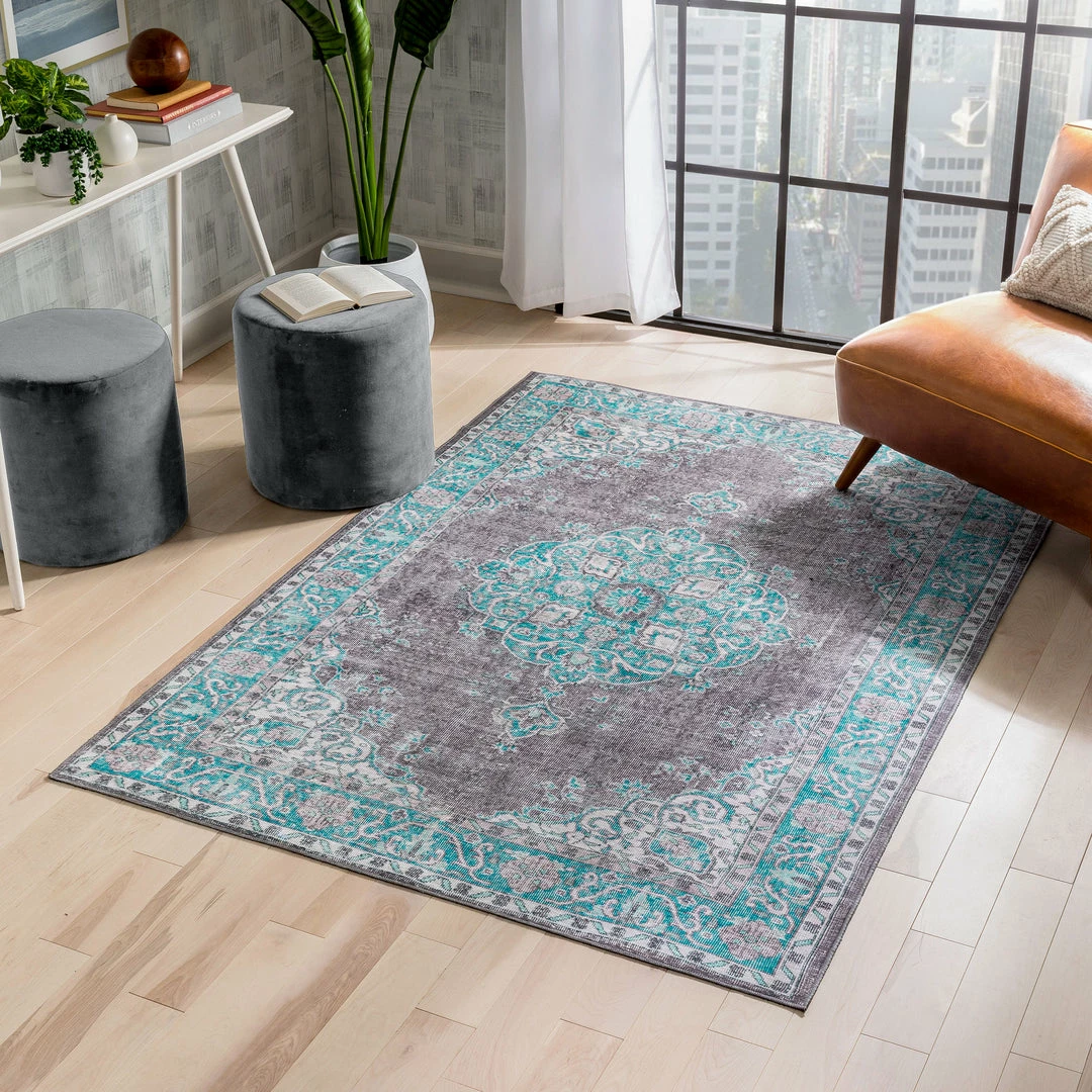 The machine washable Nile collection combines contemporary colors, an elegant medallion pattern, a wood-floor-safe backing, and durable construction for a modern and convenient rug. The kid and pet safe materials are stain resistant and easy to spot clean, making these rugs ideal for a busy family.