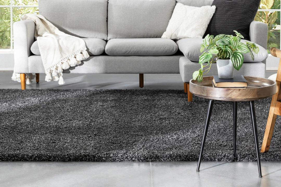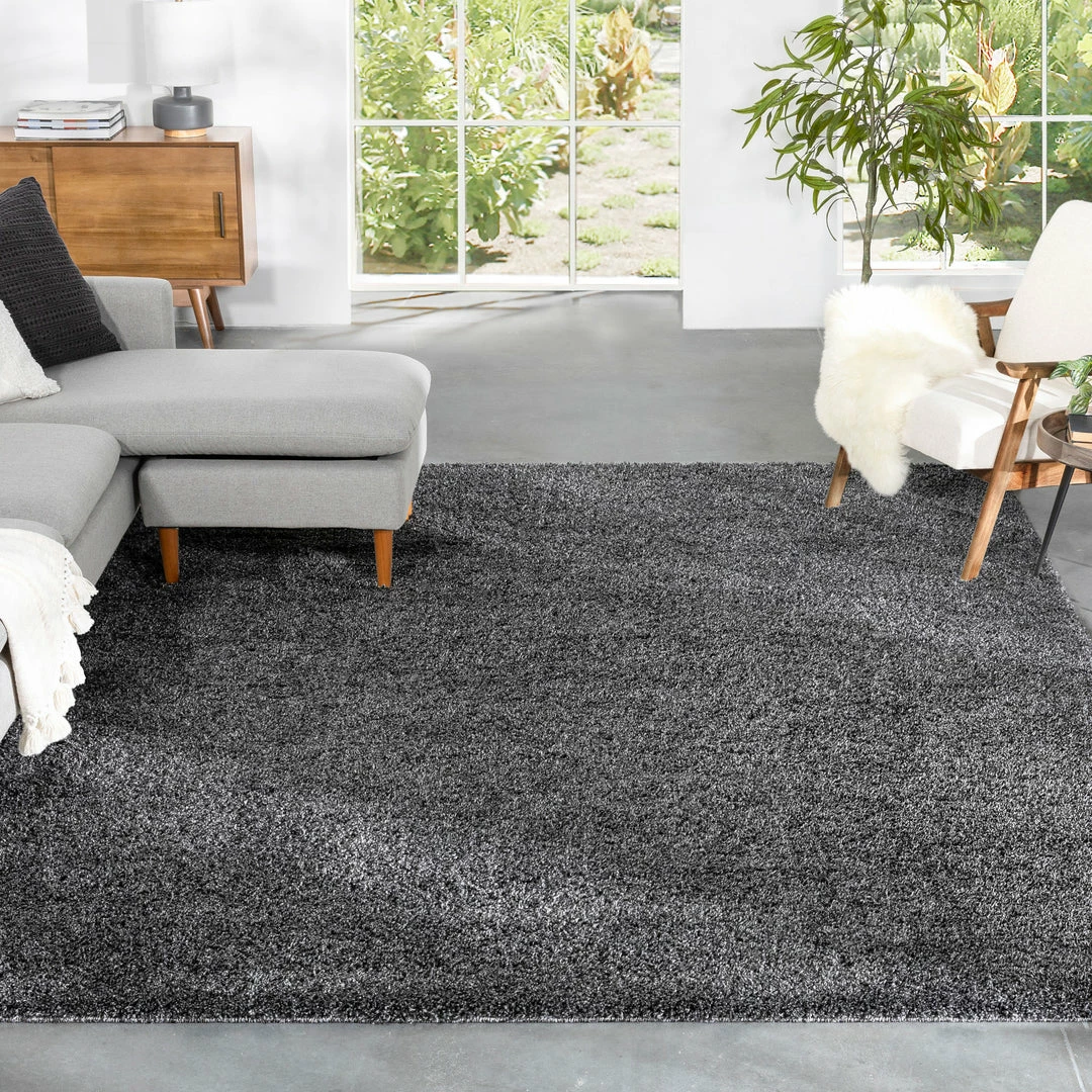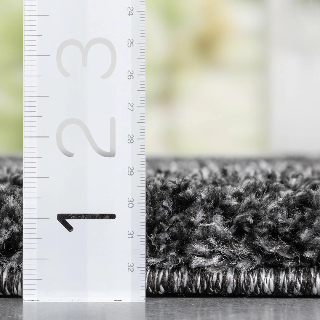 Well Woven Halden Solid Pattern Dark Grey Thick Nordic Shag Rug
