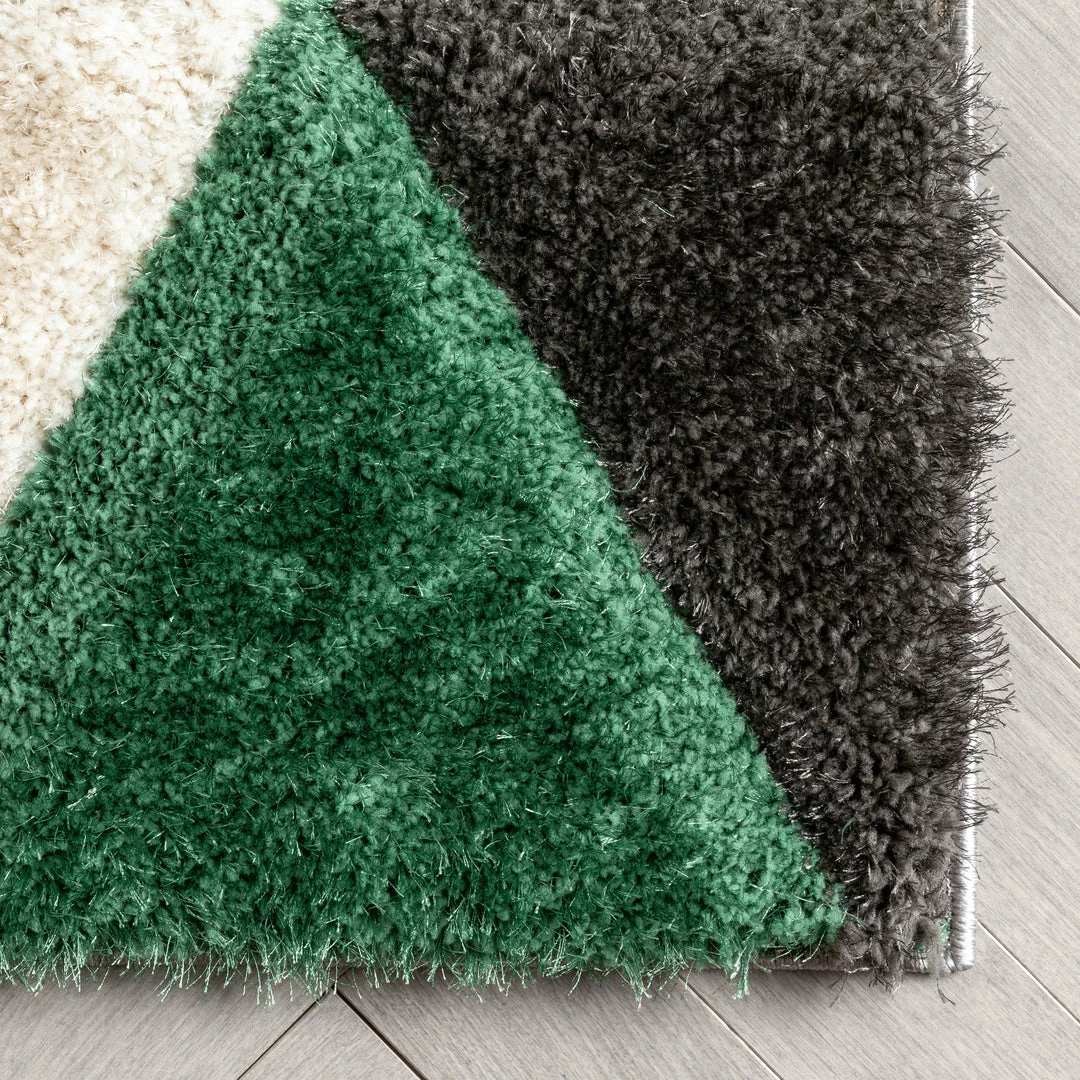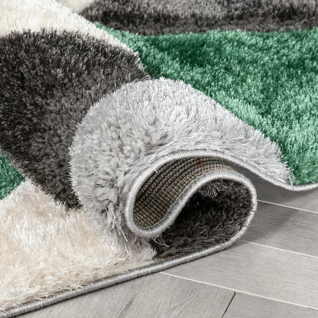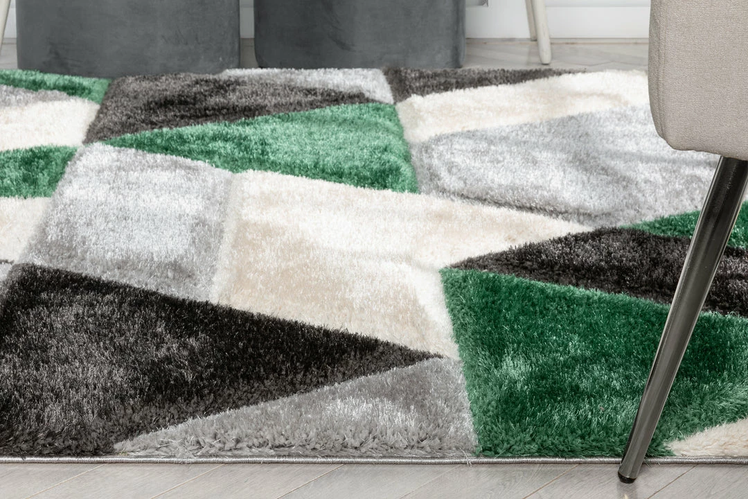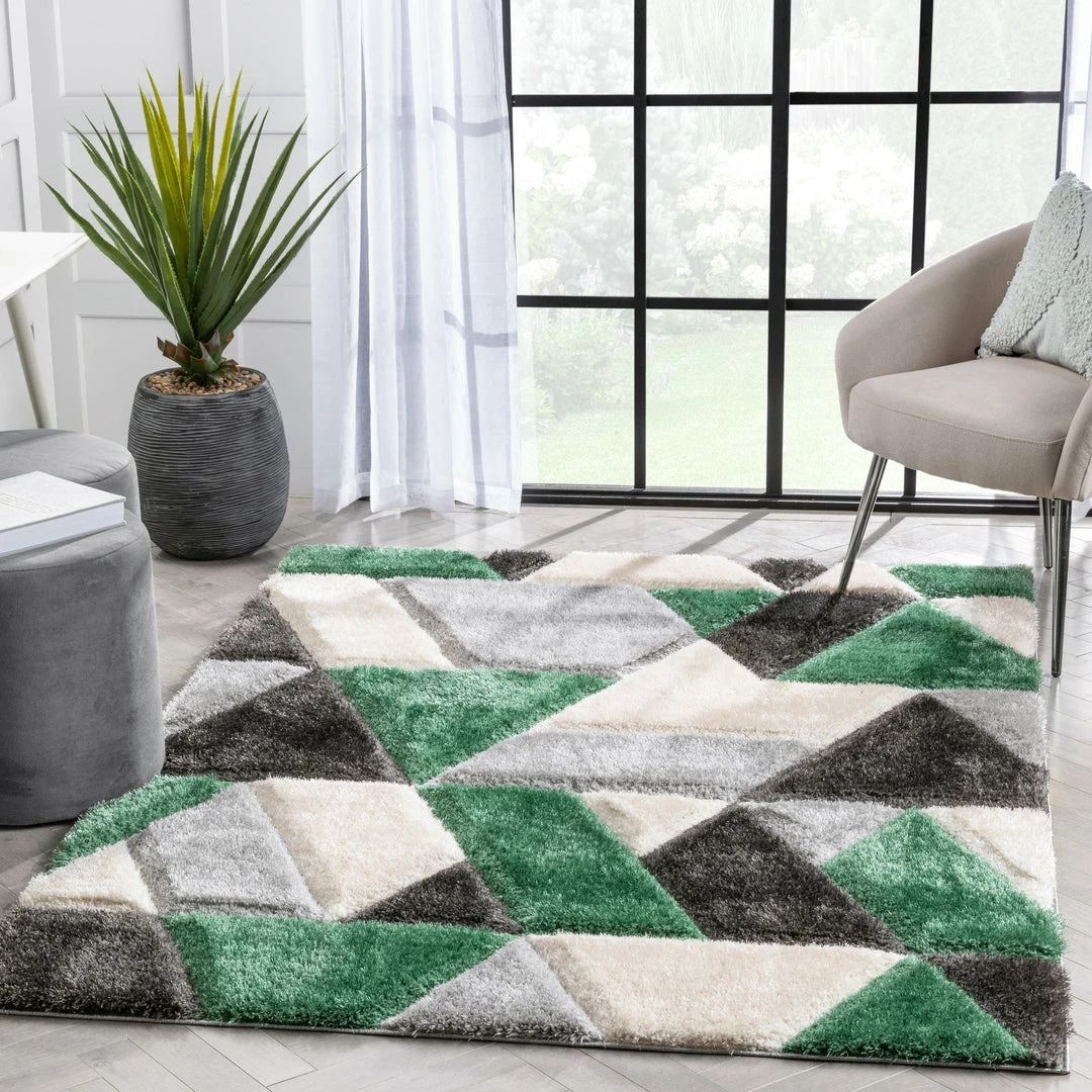 Well Woven Holland Modern Geometric Green 3D Textured Thick & Soft Shag Rug
