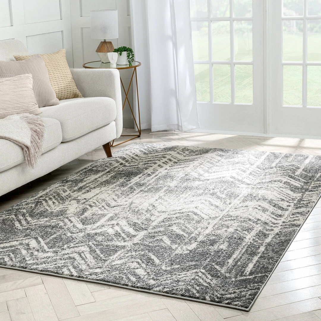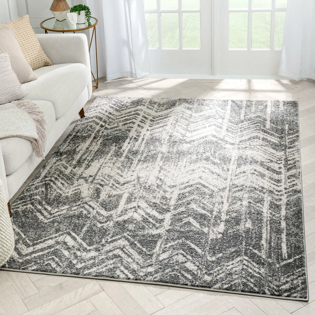 Well Woven Julie Distressed Chevron Stripes Grey Rug Global