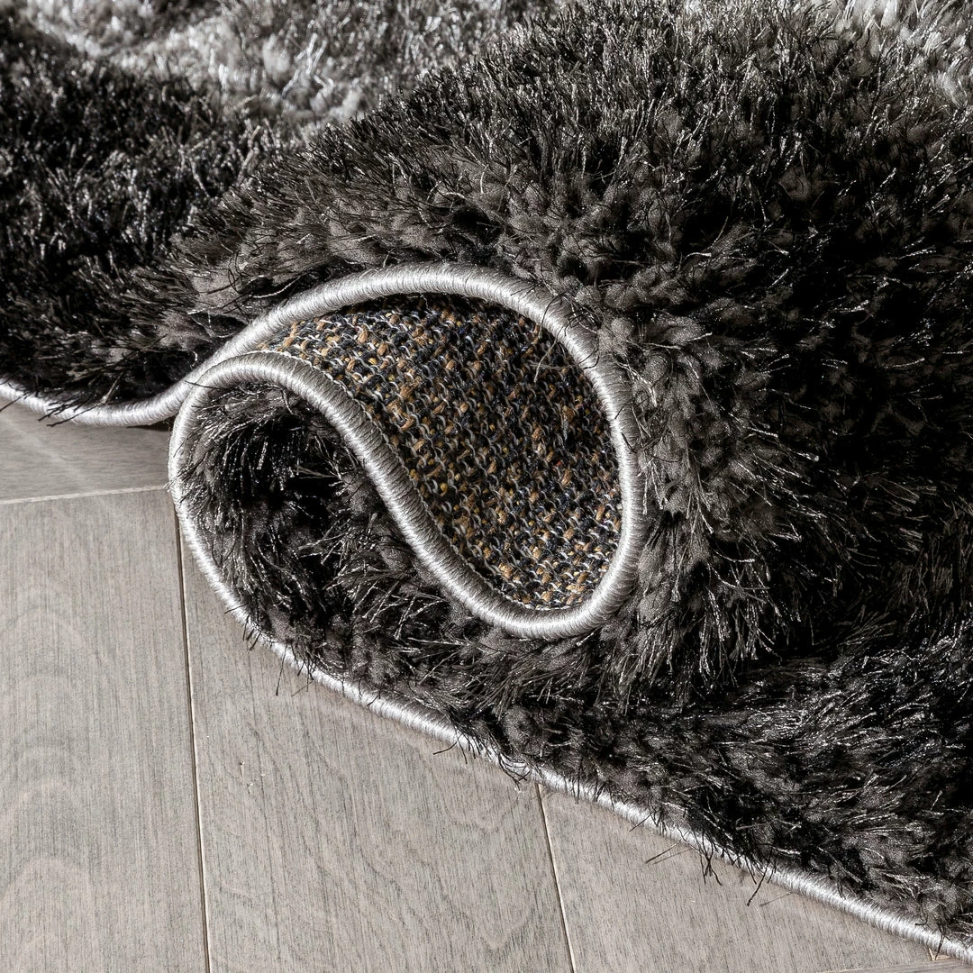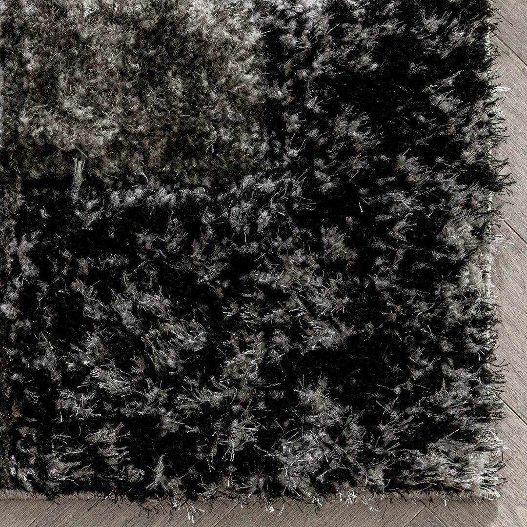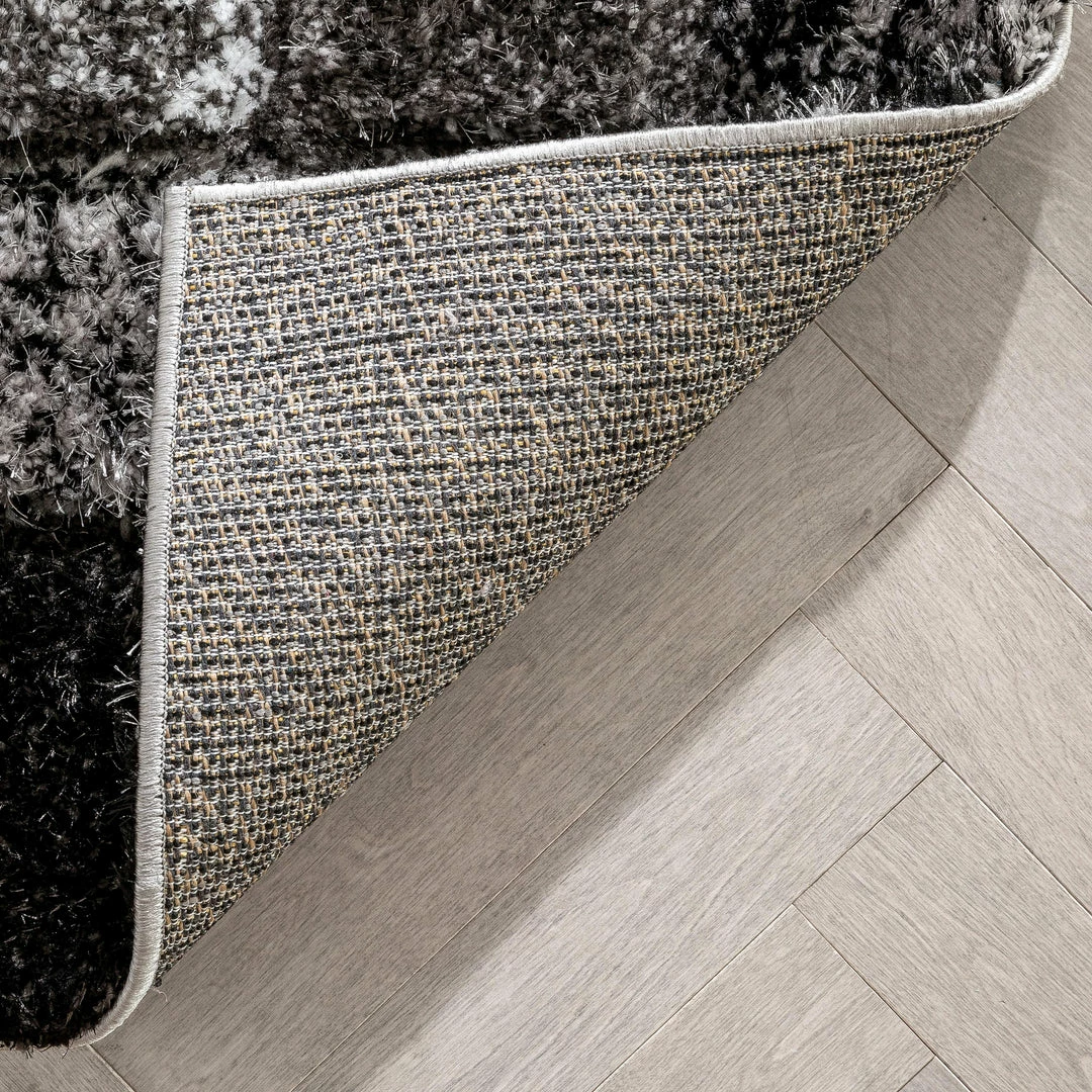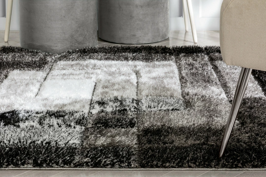 Well Woven Kenzo Retro Geometric Pattern 3D Textured Shag Black Grey Rug