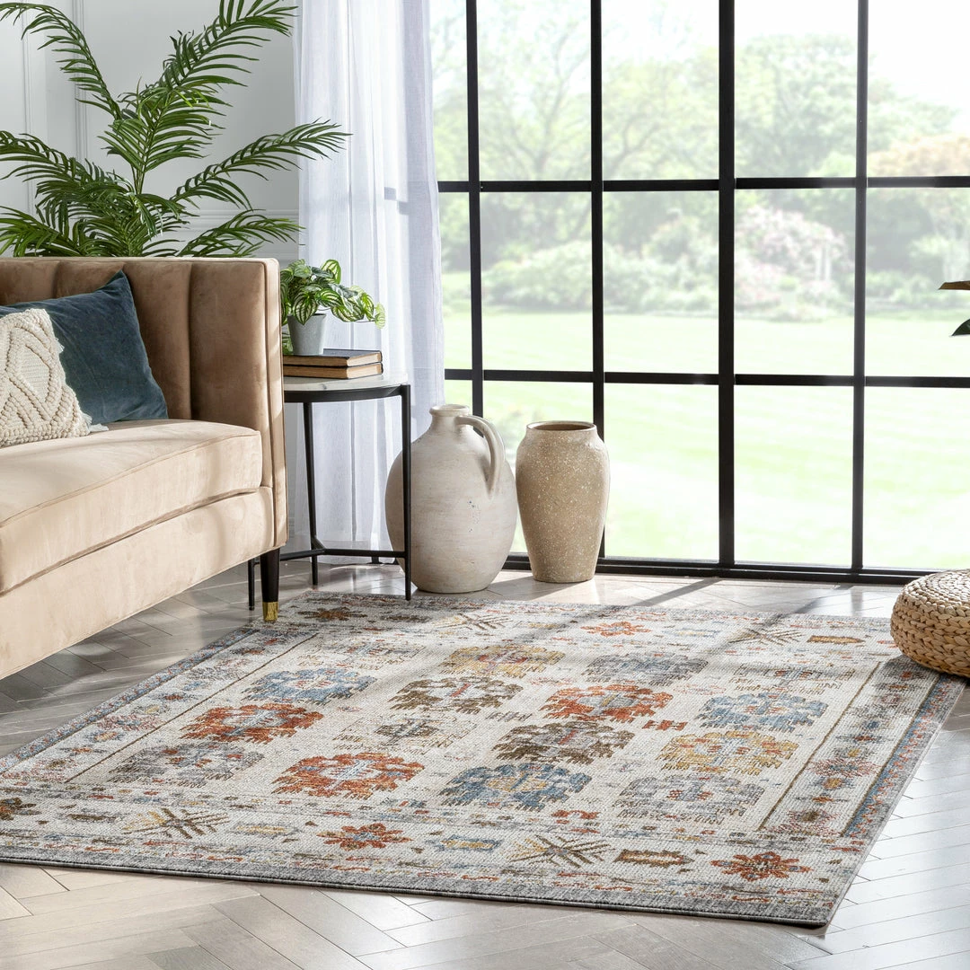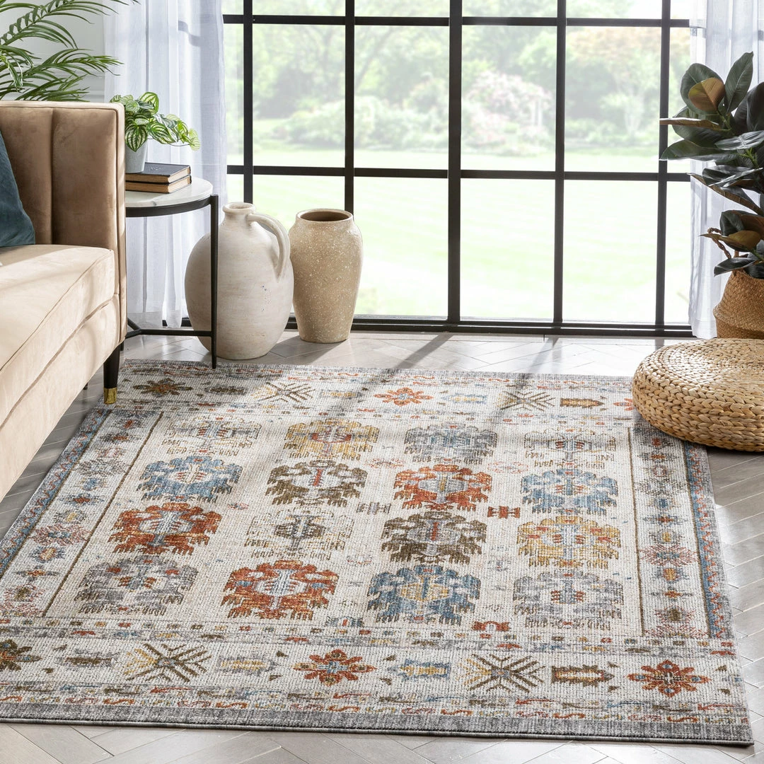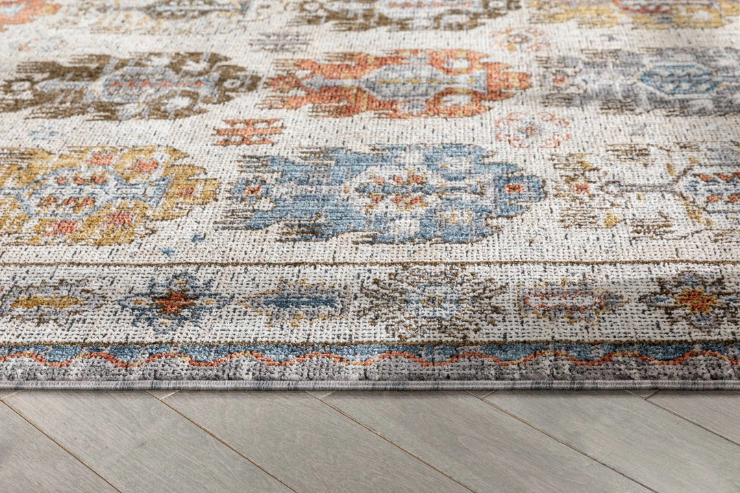 A contemporary take on heritage styles of generations past. The Tenley Collection’s timeless patterns are woven in a jewel-tone color palette anchored by soft, neutral beiges. The pile is firm and soft underfoot, with a distressed wear effect for a cozy, lived-in feel. The yarn is also stain-resistant and easy to clean.