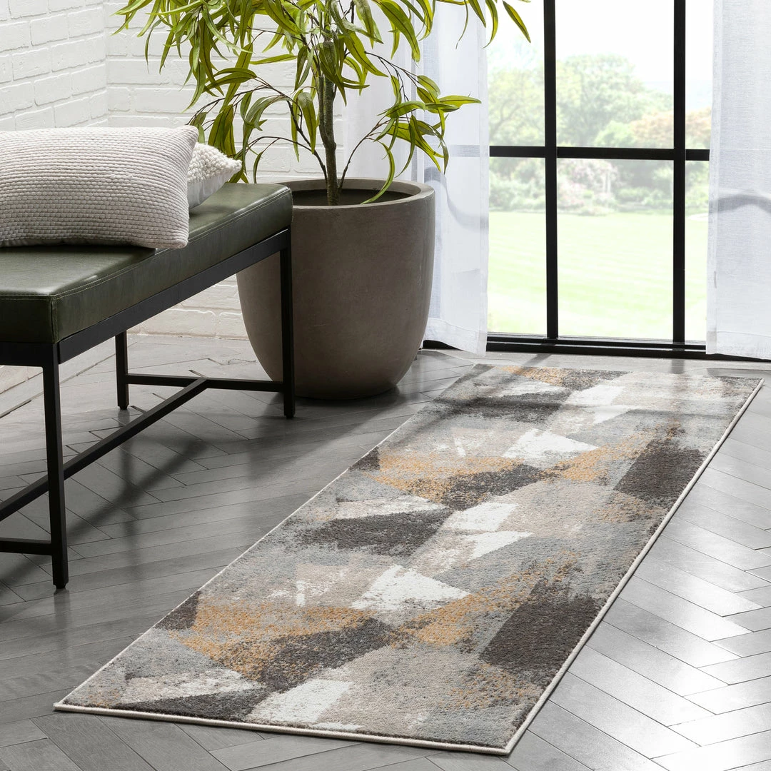 Well Woven Kye Modern Abstract Geometric Grey Rust Rug