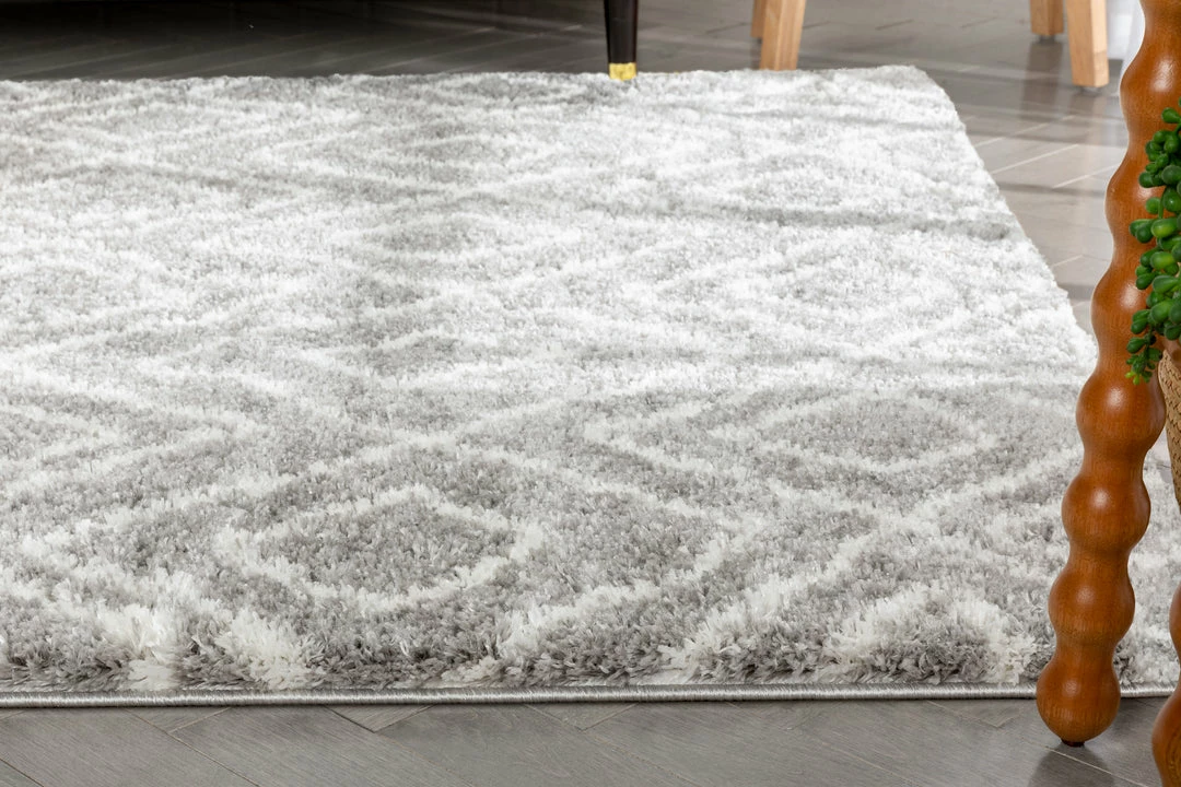 Well Woven Lagos Tribal Diamond Pattern Grey Thick & Soft Shag Rug