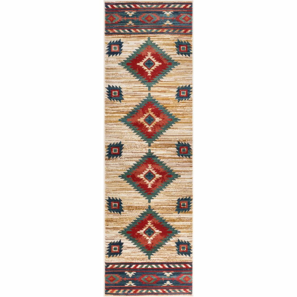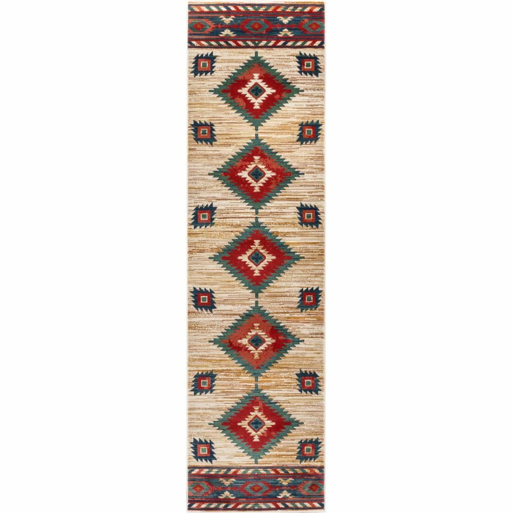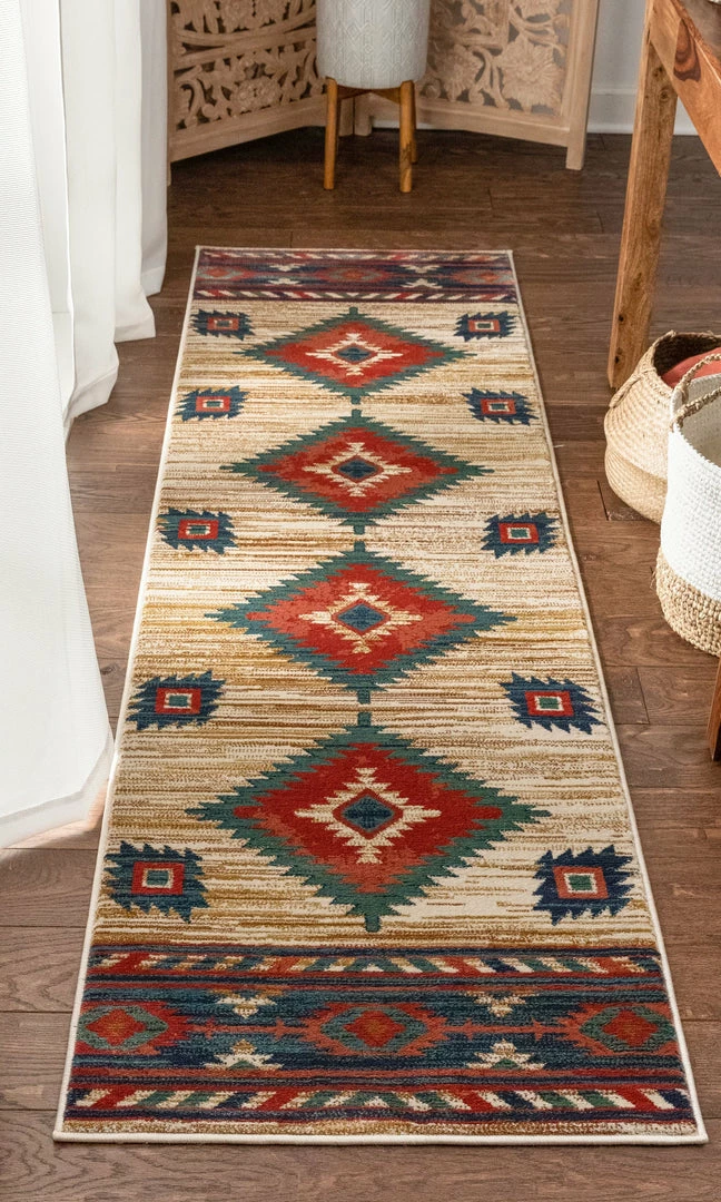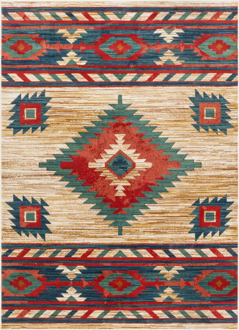 The Tulsa collection draws upon a curated array of traditional Persian, Southwestern, and Moroccan designs. A warm palette of red, blue, and green jewel tones is accented by neutral colors of ivory and beige for a rug that’s easy to match with any decor.