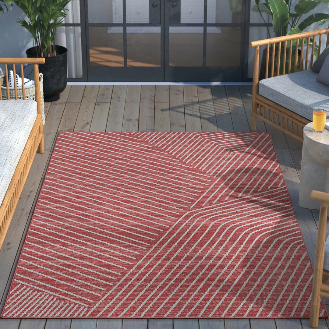 Well Woven Linden Modern Stripes Indoor/Outdoor Red Flat-Weave Rug