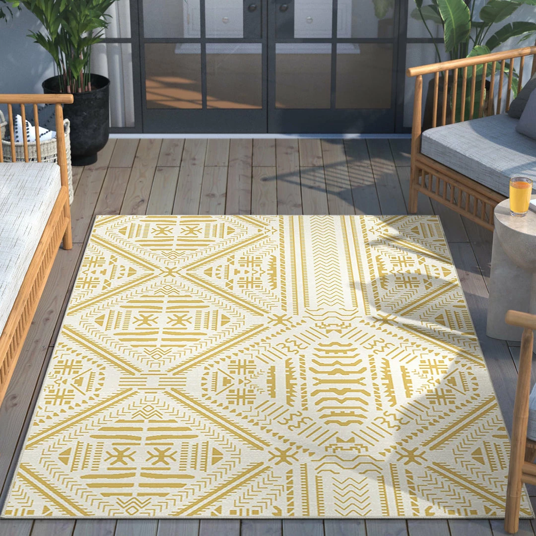 Well Woven Linden Modern Stripes Indoor/Outdoor Yellow Flat-Weave Rug
