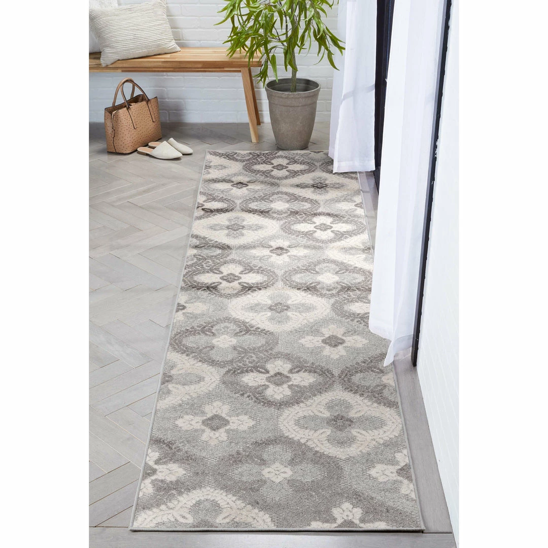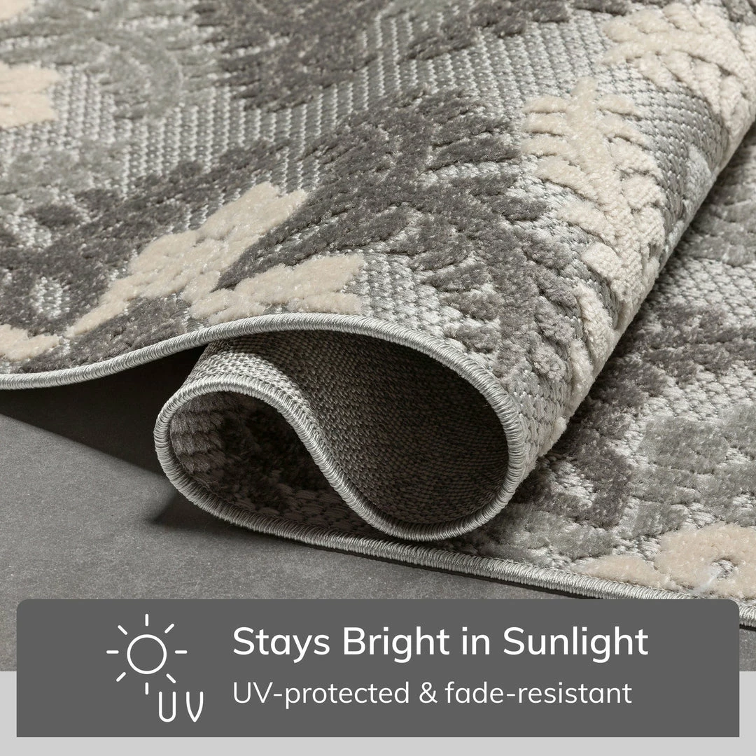 Well Woven Loewy Modern Geometric Indoor/Outdoor Grey High-Low Rug