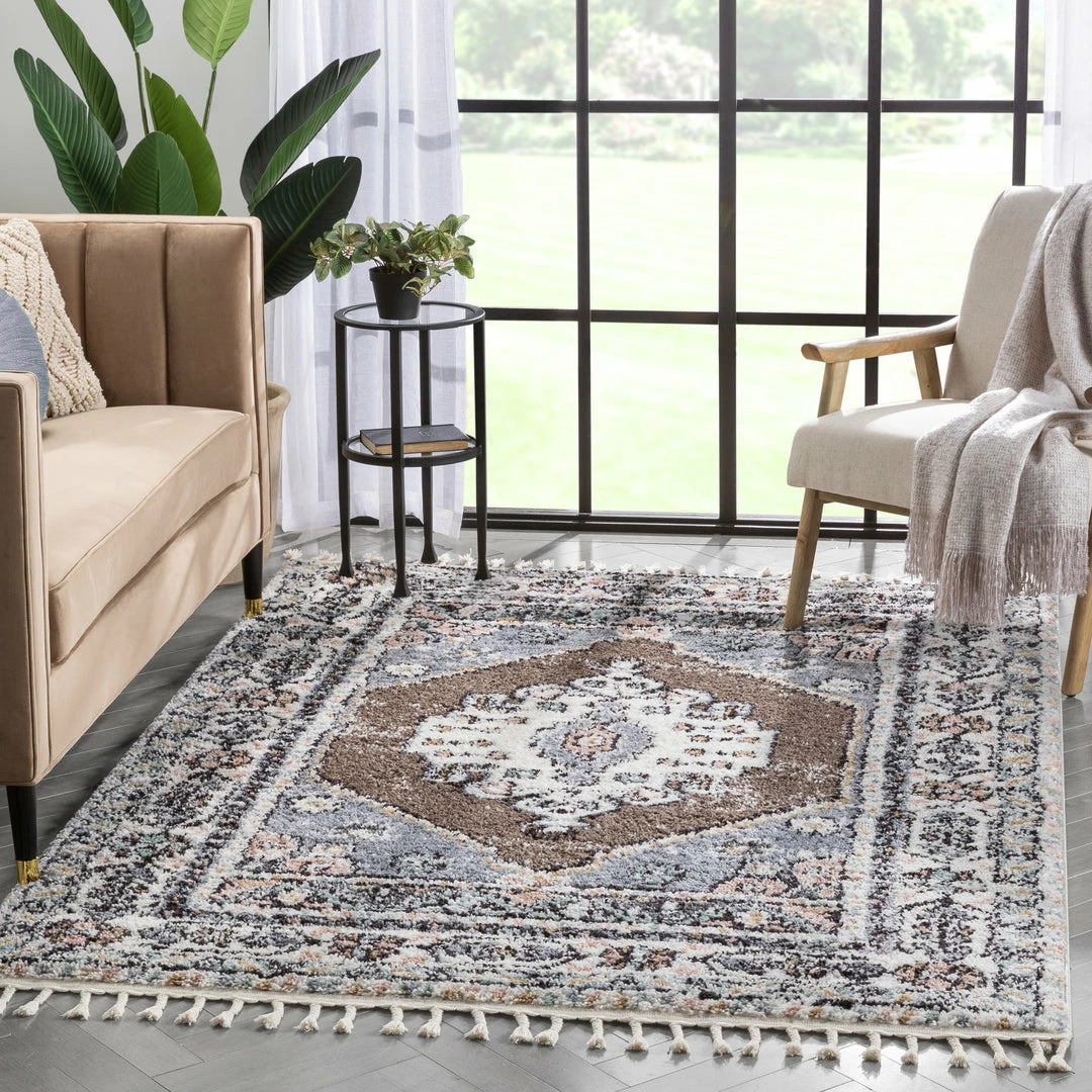 Well Woven Loire Vintage Medallion Oriental Brown Shag Rug
