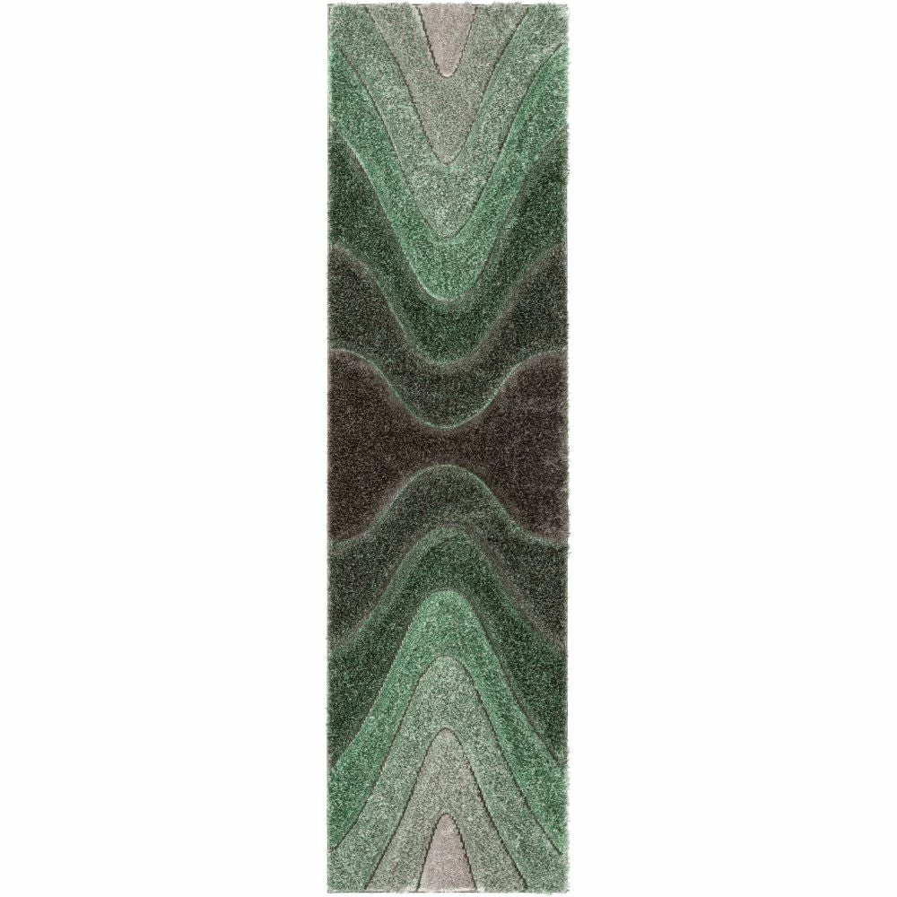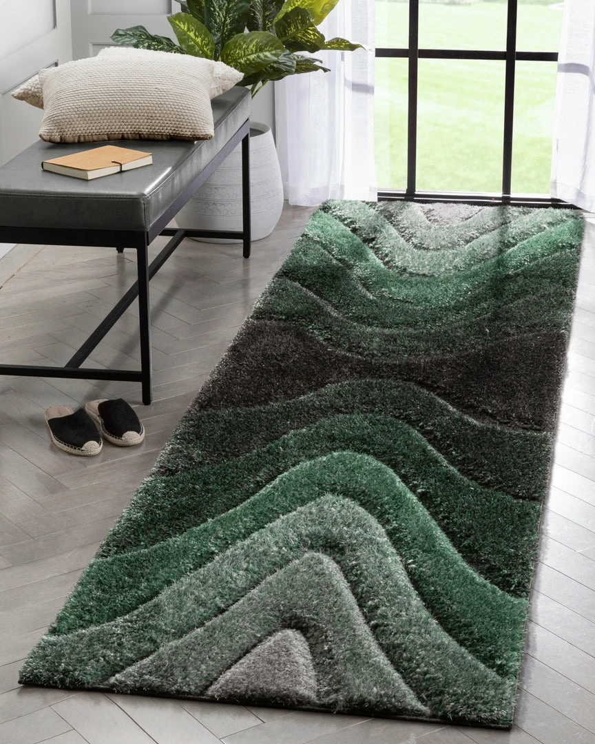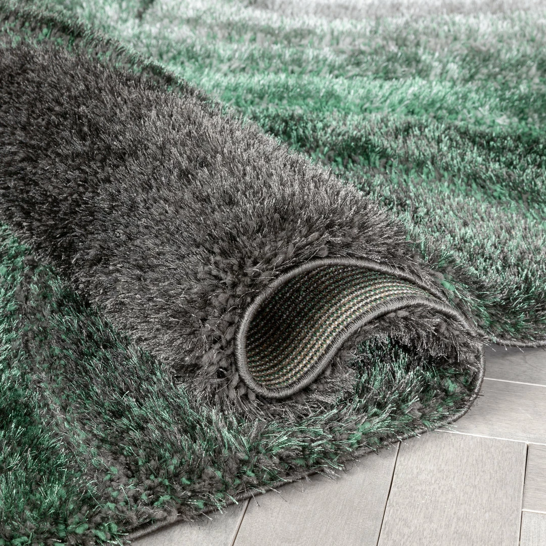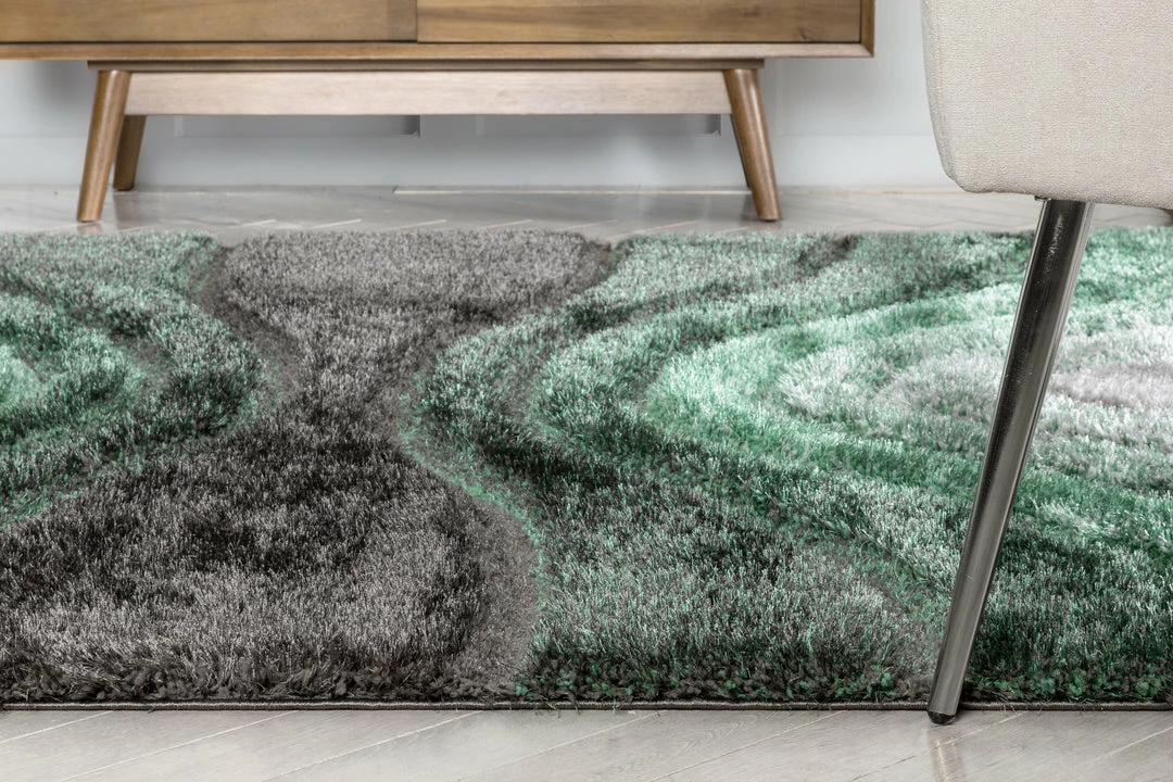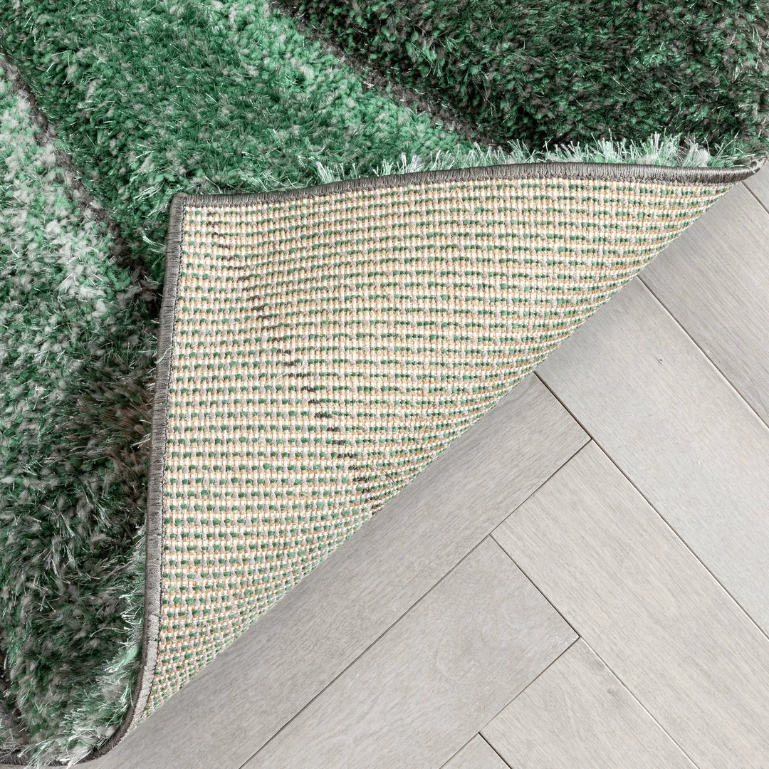 Well Woven Luz Modern Geometric Green 3D Textured Thick & Soft Shag Rug