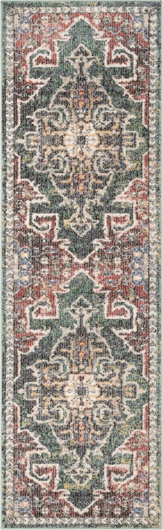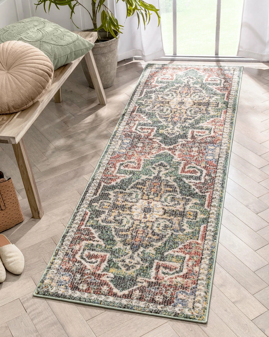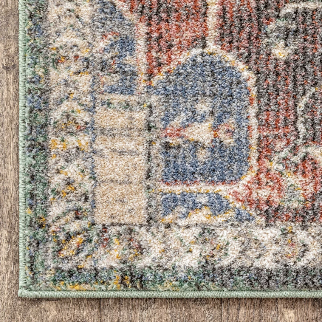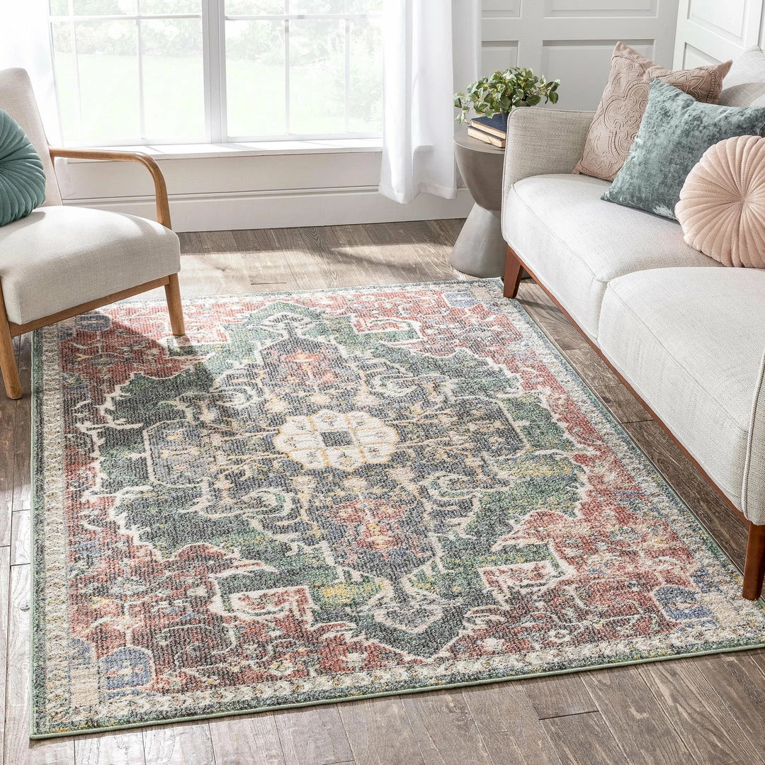 Well Woven Lyon Vintage Bohemian Medallion Oriental Botanical Green Red Rust Rug