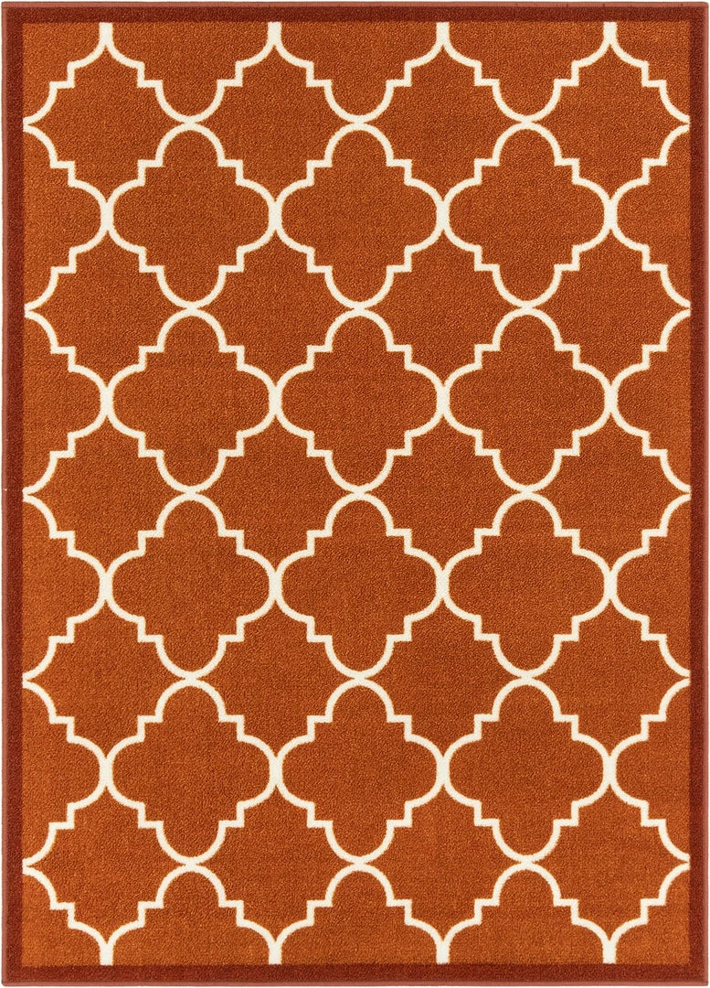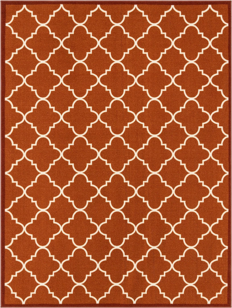 The King’s Court collection is all about convenient decoration for a busy home. The looped nylon pile measures a low 0.3″ so the rug traps less dirt and is more resistant to wear. A non-skid rubber backing eliminates the need for a rug pad and is safe for all types of floor. These rugs are machine washable, fade resistant, and serged on all sides for durability. They are easy to maintain and built to last. And with a variety of patterns from cutting edge and modern, to traditional, to kitchen cozy, you can put them anywhere.