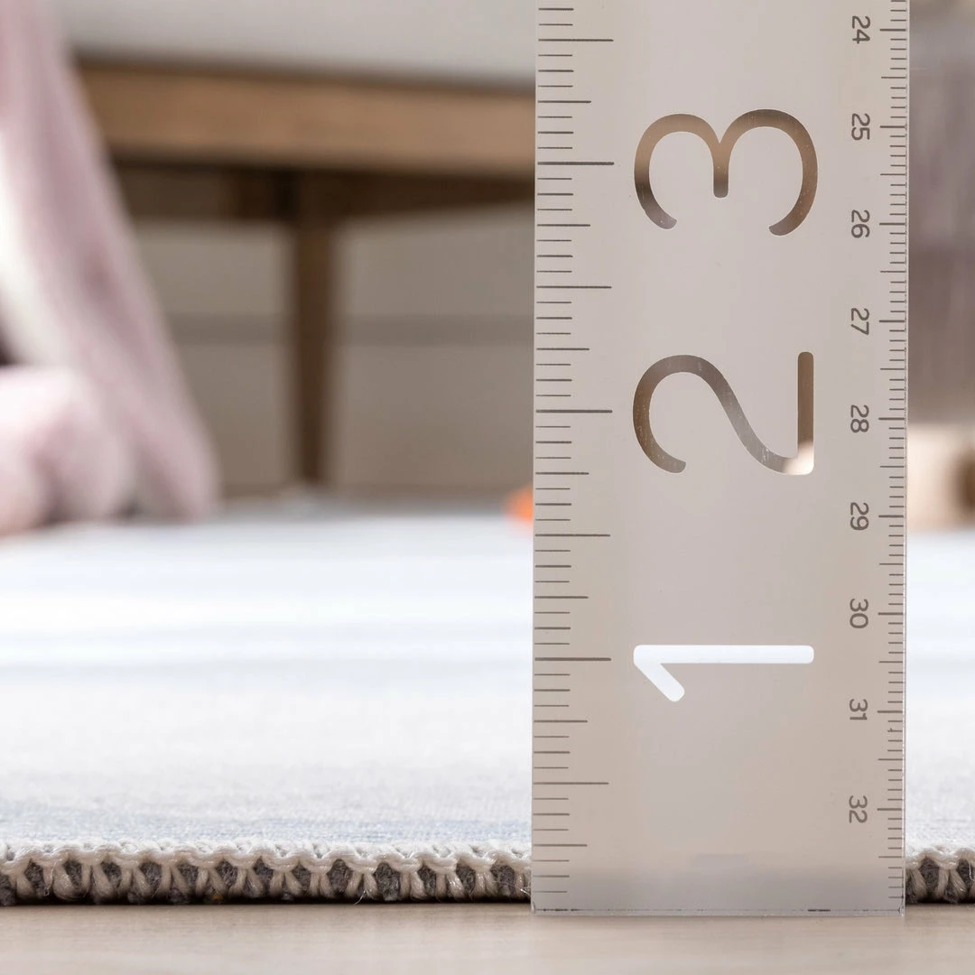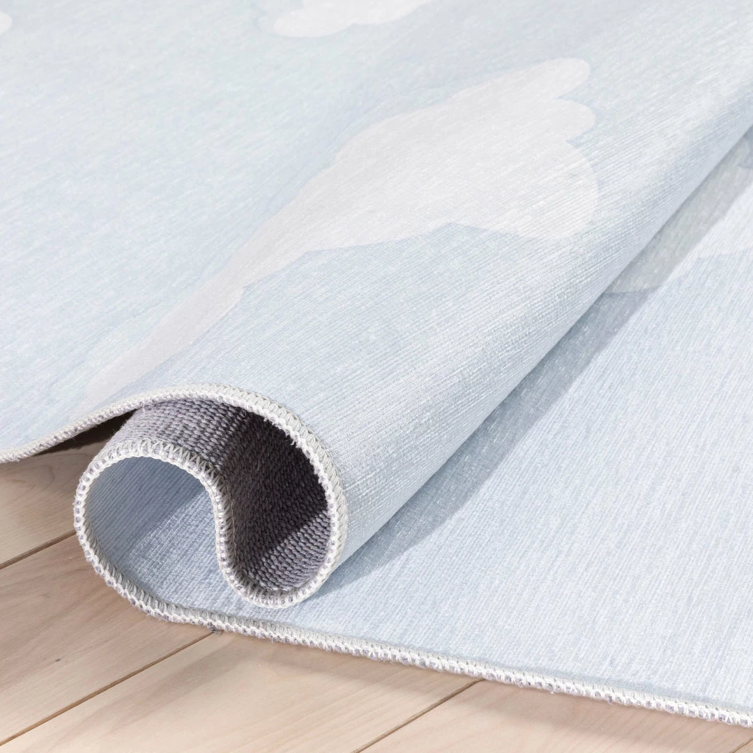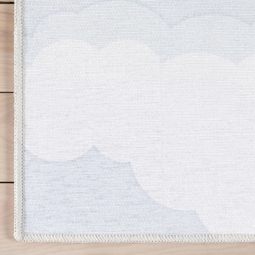 Well Woven Machine Washable Cloud 9 Sun Modern Grey Light Blue Flat-Weave Washable Kids Rug
