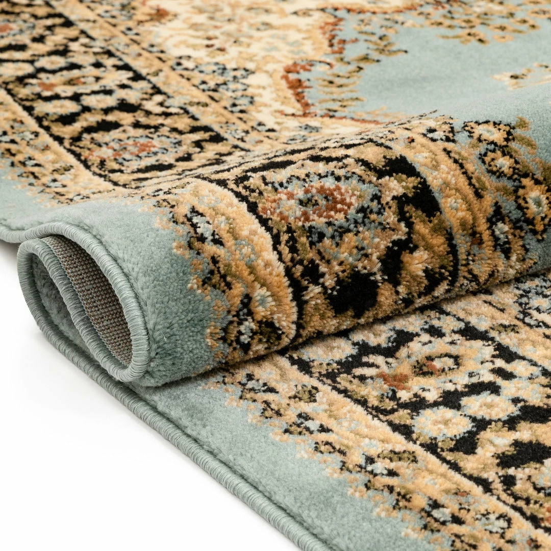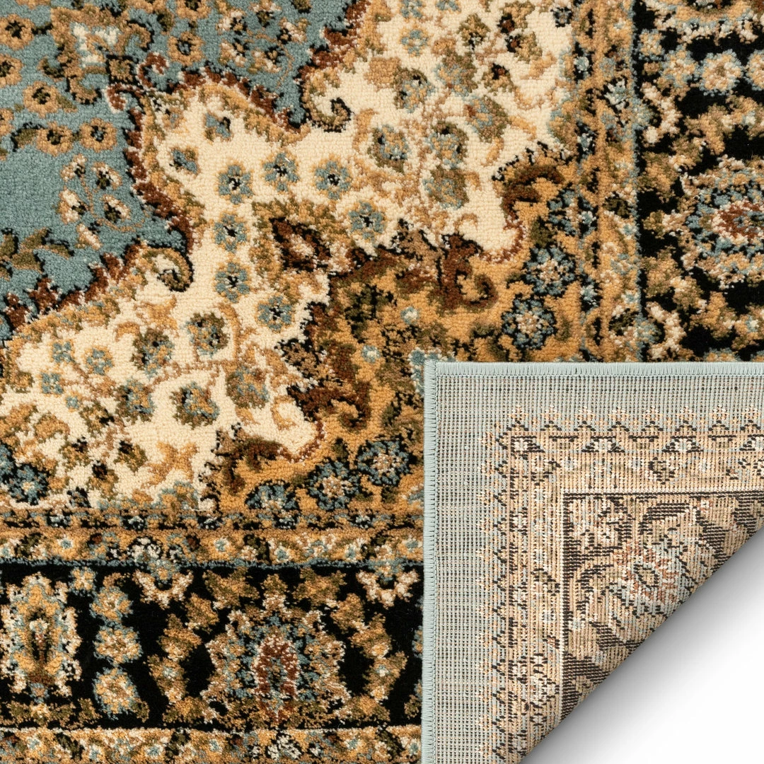 The Aurora collection brings together a curated array of patterns drawn from Modern Contemporary and Persian Oriental styles. A warm palette of red, blue, and green jewel tones is accented by neutral colors of ivory and beige for a rug that’s easy to match with any decor. The heat set polypropylene fiber gives a 0.4″ pile that is soft and stain resistant. The 100% jute backing is safe for wood floors and all four sides of the rug are serged for improved durability.