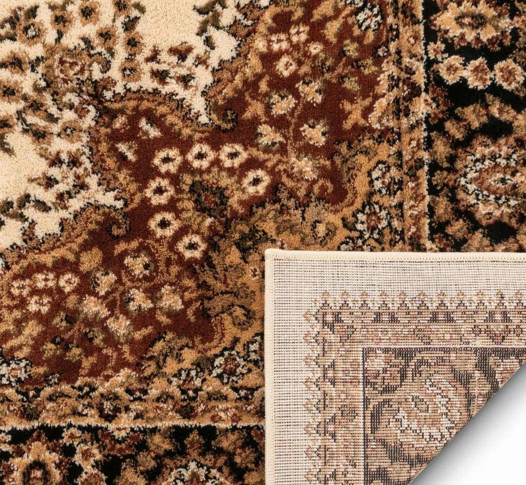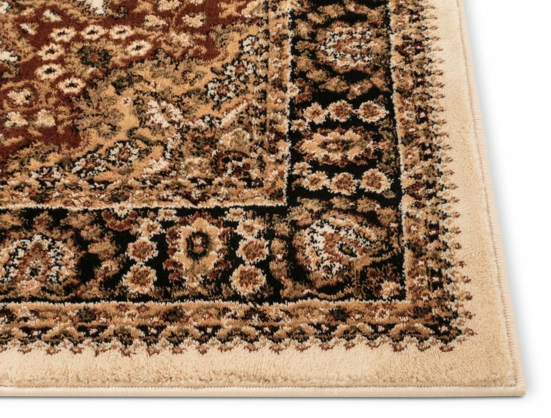 The Aurora collection brings together a curated array of patterns drawn from Modern Contemporary and Persian Oriental styles. A warm palette of red, blue, and green jewel tones is accented by neutral colors of ivory and beige for a rug that’s easy to match with any decor. The heat set polypropylene fiber gives a 0.4″ pile that is soft and stain resistant. The 100% jute backing is safe for wood floors and all four sides of the rug are serged for improved durability.
