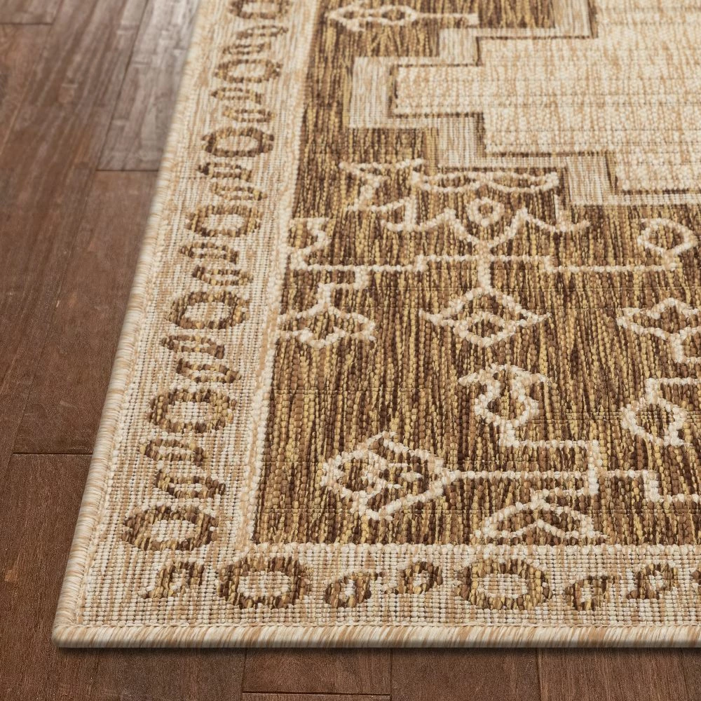 Well Woven Mani Oriental Medallion Indoor Outdoor Brown Flatweave Rug